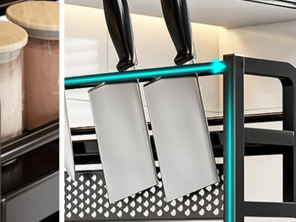 Puoi scegliere la dimensione che meglio si adatta al tuo spazio e alle tue esigenze specifiche. FACILE DA INSTALLARE: Istruzioni dettagliate su come installare l'organizer e tutti gli strumenti necessari sono inclusi nella confezione. Portaspezie Girevole Organizzatore Per Armadietti - Portaspezie A 2 Livelli, Scaffale A Parete Da Cucina Estraibile Salvaspazio, Regolabile A 4 Velocità Con Supporto Di Carico (Color : Black(W11 XH21), Size : W24 Portapiatti Da Interno Mobile Compralo con Questo articolo: Portaspezie da Cucina . Organizzatore di Spezie a 2 Livelli. Scaffalature Salvaspazio per Cucina e Dispensa. Portacondimenti per Barattoli. Ripiani Portaoggetti da Cucina en Acciaio. 39x40cm 3598€ Disponibilità Puoi stare certo che il tuo organizer rimarrà al suo posto, anche con l'uso quotidiano. Come si installa questo organizer e sono necessari strumenti speciali? L'installazione del nostro organizer è semplice e veloce e non sono necessari strumenti speciali. GANCI INTEGRATI: I ganci integrati sullo scaffale sono ideali per appendere spatole, tavolozze e altri utensili da cucina, tenendoli a portata di mano e risparmiando spazio nei cassetti. Questo organizer da cucina è adatto per una piccola cucina con spazio limitato? Sì, è disponibile in varie dimensioni per adattarsi a diversi spazi. All'interno della confezione forniamo una serie completa di istruzioni dettagliate che ti guideranno passo dopo passo attraverso il processo. BASI STABILI: Isupporti della base sono realizzati in plastica ABS, garantendo ogni giorno una solida stabilità e una presa sicura sul bancone della cucina. GANCI INTEGRATI I ganci integrati sullo scaffale sono ideali per appendere spatole, palette e altri utensili da cucina, tenendoli a portata di mano e risparmiando spazio nei cassetti. Offriamo opzioni compatte ideali per le piccole cucine. RESISTENTE È costruito in acciaio al carbonio, una scelta di materiale che garantisce resistenza incrollabile e durata eccezionale. VARIETÀ DI TAGLIE Sono disponibili diverse opzioni di dimensioni per soddisfare le tue esigenze specifiche.