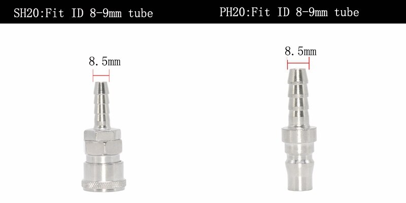 Othmro Pack Of 6 Air Quick Connector SH20 PH20 Hose Elevata resistenza alla corrosione e lunga durata. Othmro 6PCS Air Quick Connector SH20 PH20 Hose Fitting Kit for 8mm/0.31 inch Hose Facile da spingere in modo da collegare rapidamente gli accessori del compressore d'aria. Alta resistenza e durezza. Facile da installare. Adatto per tubi da 8 mm. Realizzato in acciaio di qualità per un destino lungo, robusto, robusto. Specifica: Trattamento superficiale: nichelatura; Materiale: ferro; Nota: Si prega di considerare un margine di errore di 1-2 mm dovuto alla misurazione