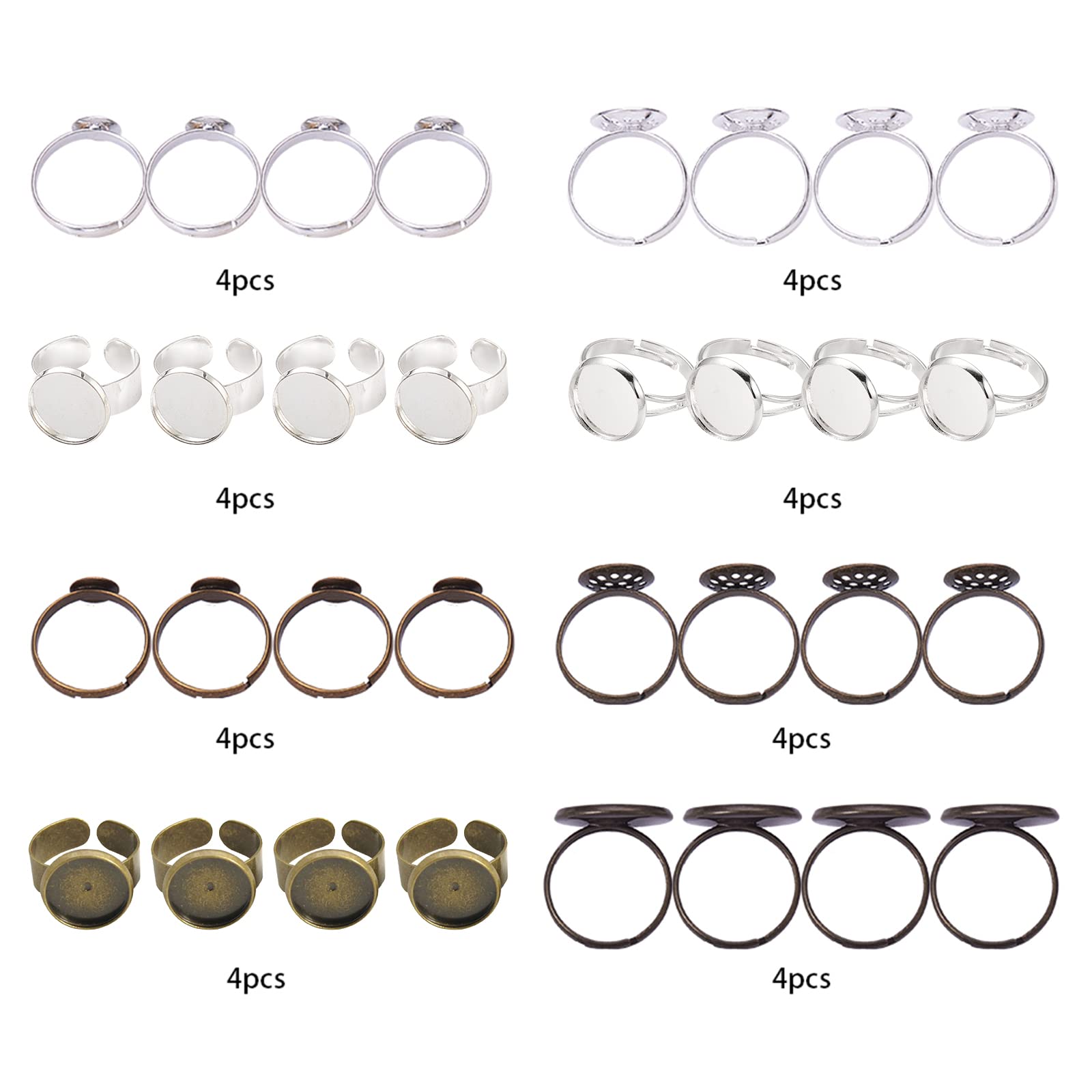 SUNNYCLUE 32pz Anello Di Cabochon In Ottone Impostazione Include 8mm Di Basi Per Anelli Vuoti Con Cuscinetti E 16mm / 18mm Di Spazio Ovali Rotondi Per Gioielli,Anello Regolabile, Libero