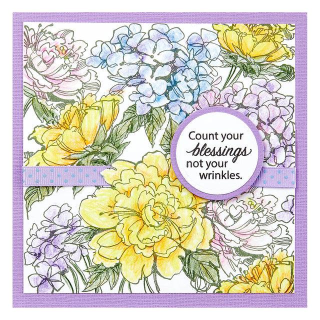 Stampendous Floral Garden Cling Rubber Stamp Set is a stunning floral design covers the entire cling rubber stamp surface. Fun to use watercolors or markers to color the full blooms! Designer’s Tips Per ottenere i migliori risultati, si consiglia uno strumento/piattaforma di stampaggio. Suggerimenti del designer: assicurarsi di inchiostrare bene l'intera immagine prima di timbrare. Il set di timbri in gomma Stampendous Floral Garden è uno splendido design floreale copertine tutta la superficie del timbro di gomma aggrapparsi. Divertente da usare acquerelli o pennarelli per colorare i fiori completi! Try It Out Tuesday | Spellbinders – Beautiful Backgrounds Collection Dimensioni approssimative: 14,10 x 14,10 cm