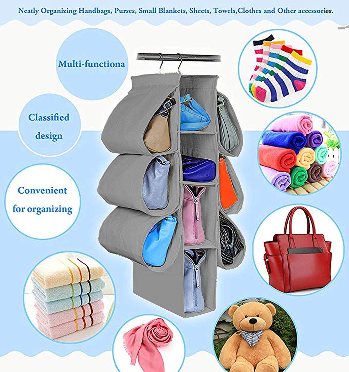 1pz Organizzatore Appeso Per Borse A , Tessuto Oxford, Pieghevole, Adattamento Universale, 6/8 Tasche, E , Materiale In Tessuto, Con Borsa Per Riporre, Per Armadio , Camera Da Letto - Borse E Valigeria - Temu
