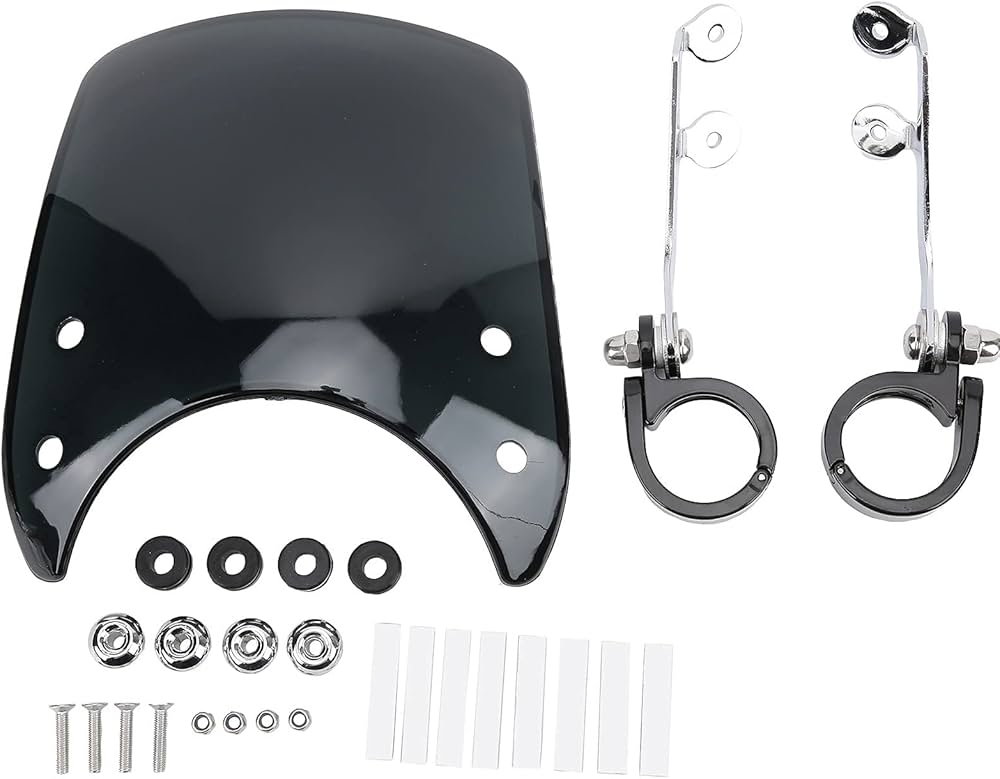 cupolino parabrezza universale fairing harley viper davidson verkleidung universelle cupolini Design unico: design innovativo, stile retrò unico, come la tesa di cappello, aspetto personalizzato, migliora l'aspetto del corpo, è la decorazione perfetta per le moto. Montaggio: (applicabile ma non applicabile ai seguenti modelli, si prega di confermare se la dimensione del prodotto ¨¨ appropriata prima dell'acquisto) Sostituzione per i modelli XL dal 04 in poi (eccetto per 883L 11-pi¨´ tardi, XL1200C, XL1200CX, XR1200X, 16-pi¨´ tardi XL1200X e 18-pi¨´ tardi XL1200XS) La sostituzione per XL1200NS richiede la rimozione della visiera del faro. Specifica: Tipo di elemento: parabrezza per moto Motorcycle Materiale del parabrezza: acrilico (spessore 0,12 pollici) Materiale di supporto: metallo in acciaio/strato protettivo anodizzato Posizione di installazione: albero della forcella anteriore accanto al proiettore, appena sopra il proiettore. Qualità premium: realizzato in eccellente materiale acrilico, ha superato severi controlli di qualità, anticorrosione, resistenza all'abrasione, non facile da invecchiare, forte resistenza agli urti, forte e durevole. Parabrezza Kymco Agility 125 PARABREZZA CUPOLINO GP SPORT FAIRING RETTANGOLARE NERO UNIVERSALE PER MOTO CAFE RACER Deflettore Moto Modello applicabile: il parabrezza per moto è applicabile per i modelli XL dal 04 in poi, per XL1200NS richiede la rimozione della visiera del faro, per 1200 Nightster XL1200N 2009-2012. Dimensioni compatibili: il parabrezza del motociclo è adatto per la forcella anteriore da 38-41 mm / 1,5-1,6 pollici, che può posizionare meglio la tua scelta.
