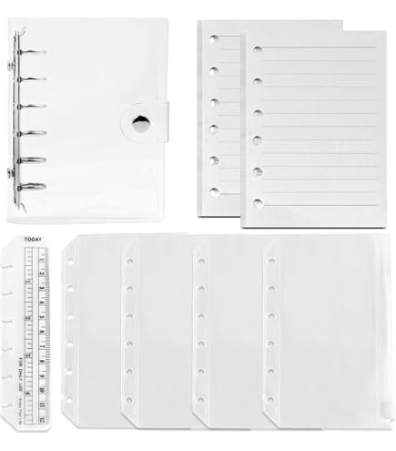 Copertina Trasparente Per Diario PATIKIL A7 Copertina Per Raccoglitore Trasparente, PVC Fogli Per Raccoglitore Specifiche: Dimensioni: 140x105mm/5.5x4.1Pollici (L*W); Dimensioni carta compatibile: A7; Materiale: PVC morbido e metallo; Colore copertina: Nero; Colore anelli: Tono argento; Lista imballaggio: 1Pz x Copertine trasparenti A7 per raccoglitore PATIKIL Copertina Raccoglitore Trasparente A7 , 2pz Morbido Pvc Raccoglitore Fogli Mobili Chiusura Bottone Pressione, 6 Anelli Color Oro Rosa per Quaderno Riunioni, Cartella Trasparente Vantaggi: La copertina trasparente A7 per raccoglitore è realizzata in PVC morbido impermeabile che non si deforma facilmente e può proteggere i tuoi documenti da strappi e polvere; Gli anelli per raccoglitore a fogli mobili sono realizzati in metallo che è eccellentemente resistente alla ruggine, all'usura, che non si sbiadisce facilmente e può essere utilizzato a lungo; Ti consentono di sostituire i fogli interni, sfogliare le pagine e scrivere sul retro delle pagine facilmente. Inserisci i fogli delle dimensioni appropriate negli anelli per raccoglitore a fogli mobili. Quindi premi entrambi i lati degli anelli per chiuderli. Istruzioni: Premi entrambe le estremità per aprire gli anelli. Applicazione: La copertina trasparente A7 per raccoglitore è ampiamente utilizzata in uffici, case e viaggi come perfetto protettore per appunti di studio, diari, registri di riunioni, registri di lavoro, lavori di disegno, album fotografici, ecc.