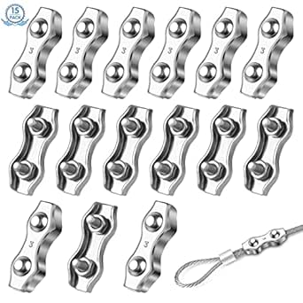 PATIKIL Morsetto Per Cavo 3mm Foro Filo Corda Mollette, 2pz Morsetto Per Cavi In Acciaio Inox 304 Mano Intrecciato Filo Morsetti Elementi Fissaggio Viti Per Acciaio Filo, Argento