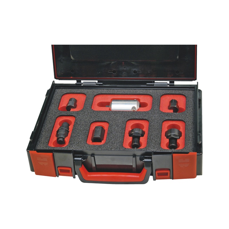 Numero di pezzi: 3 adattatori inclusi per soddisfare diverse esigenze operative. Ampia Compatibilità: Le diverse misure coprono un’ampia gamma di applicazioni, rendendo il kit versatile e indispensabile. Kit di adattatori per estrazione iniettori Siemens e Denso Misure Incluse: M14x1.5 - 16 mm M14x1.5 - 13.5 mm M14x1.5 - 12 mm Caratteristiche Tecniche: Materiale: Acciaio temprato, progettato per resistere a forti pressioni e usura. Misure incluse: M14x1.5 - 16 mm, M14x1.5 - 13.5 mm, M14x1.5 - 12 mm. Durabilità: Realizzati in acciaio temprato di alta qualità, resistono a condizioni di lavoro gravose e a usura nel tempo. Kit 3 Pezzi Adattatori per Estrattori Pneumatici – Precisione e Versatilità per Lavori Meccanici Questo kit di adattatori per estrattori pneumatici è progettato per offrire precisione, resistenza e compatibilità universale. Ogni adattatore è progettato per garantire un’accoppiatura perfetta e prestazioni affidabili. Ideale per officine meccaniche e appassionati di fai-da-te, consente di rimuovere in modo rapido e sicuro cuscinetti, pulegge, ingranaggi e altri componenti. Estrattore Iniettori KIT 3PZ ADATTATORI PER ESTRATTORI ESTRATTORE PNEUMATICO PER Iniettori Ad Aria P 19411 Frese Iniettori