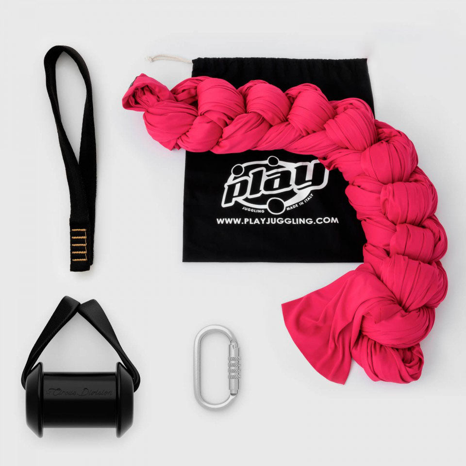 Le evoluzioni aeree aiutano a esprimersi meglio con il corpo e con la sincronia dei movimenti, sviluppando la consapevolezza della stretta connessione fra equilibrio fisico ed equilibrio interiore. es: Altezza gancio da terra = 4m Lunghezza corretta 8+2=10m. Come scegliere la misura Il tessuto deve essere piegato a metà e fissato all’apposito gancio. Made in Italy Tessuti per acrobatica aerea Made in Italy di eccellente qualità, sviluppati in collaborazione con acrobati e insegnanti di tutto il mondo. Gancio di Ancoraggio Da utilizzare insieme ai tessuti aerei, i ganci sono un accessorio fondamentale per realizzare una postazione dedicata all'acrobatica aerea con tessuti. tessuto aereo gancio piastra soffitto tessuti Si tratta di una disciplina creativa, formativa e armoniosa che permette di sfidare la gravità e di conquistare l’altezza superando i propri limiti. Morbido e piacevole al tatto. I migliori attrezzi certificati, interamente progetti e fabbricati in Italia. La storia di Play Juggling Play Juggling è specializzata nei prodotti Aerial & Circus. Attrezzatura pensata, studiata e realizzata in collaborazione con i migliori giocolieri del mondo! Questo tessuto permette di avere perfettamente il controllo nelle scivolate e nelle cadute. Privo di saldature e parti metalliche esposte il gancio CIRCUS DIVISION ha un'anima in acciaio inossidabile ricoperta di silicone. Minimo allungamento longitudinale per un eccellente controllo nelle scivolate e nelle cadute e per diminuire lo sforzo nell'issare il proprio peso. TESSUTI AEREI PROFESSIONALI - Tessuti per acrobatica aerea certificato. Sacca inclusa Con la pratica sacca è possibile riporre il tessuto ovunque oppure trasportarlo comodamente. Per identificare la lunghezza esatta del vostro tessuto, è necessario moltiplicare x2 l’altezza del punto di ancoraggio da terra e aggiungere altri 2m. Come eseguire il montaggio Uno dei vantaggi di questo design cilindrico consiste nel fatto che permette di fissare i tessuti con il nodo BARCAIOLO, il più raccomandato, sicuro e semplice, che consente di tenere le due estremità ben separate tra loro minimizzando lo stress subito dal tessuto stesso. ATTENZIONE - Consultate sempre un professionista esperto per determinare se il soffitto o la trave a cui intendete fissare il vostro punto di ancoraggio sia adatta allo scopo. Un vantaggio di questo design cilindrico consiste nel permettere di fissare i tessuti tramite nodo BARCAIOLO, sicuro e semplice, che consente di tenere le due estremità separate tra loro minimizzando lo stress subito dal tessuto stesso. Per sapere la lunghezza esatta del vostro tessuto dovrete quindi moltiplicare x 2 l’altezza del punto di ancoraggio da terra e aggiungere altri 2 metri. Tessuti Aerei + GANCIO PER TESSUTO + PIASTRA SOFFITTO Tessuto Aereo