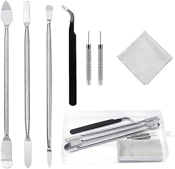 Adatto per smartphone, laptop, tablet, schermi LCD e piccoli dispositivi elettronici. Lo strumento adotta speciali per graffiare e scheggiare Lo strumento di apertura ripara e sostituisce il telefono senza danneggiare. Lo strumento di plastica adotta una plastica speciale per evitare graffi e scheggiature. Spudger - Set di 11 strumenti di apertura e spudger in metallo, strumento di apertura e apertura per cellulari e tablet Caratteristiche: Lo strumento di apertura ripara e sostituisce il telefono senza danneggiare. Facile da trasportare e riporre. Specifiche tecniche: 2/5 PEZZI DI Spudger Piatto In Metallo Con Lama Morbida Per Riparazione Antiscivolo, ad alta resistenza, resistenza ad alta temperatura, alta efficienza.
