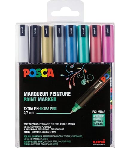 Che si tratti di plastica, tessuti, metallo, ceramica o vetro, con il pennarello Posca si può lavorare perfettamente su qualsiasi superficie. tessuto Fissaggio: Lavare i tessuti prima di dipingere. uni-ball 186351 - Marcatore POSCA con punta rettangolare extra-larga , blu scuro : : Cancelleria e prodotti per ufficio. Passa a. Contenuti principali Informazioni sull'articolo Informazioni sull'articolo Informazioni sull'articolo Opzioni di acq Tipo punta a scalpello Colore blu Tratto 15 mm Colore fusto nero I pennarelli acrilici Posca sono adatti per quasi tutte le superfici cartone Fissaggio: Vernice spray a base d'acqua. Con il suo formato XXL è lo strumento professionale ideale per pubblicità di successo e ideale per creazioni di grandi dimensioni di artisti. Dopo la verniciatura, stirare a sinistra senza vapore. I pennarelli sono confezionati in una custodia di plastica. Art. N. 186308Confezione da 8 pezzi I pennarelli sono confezionati in una custodia di plastica. Art. N. 186302 Posca è adatto per artisti dai 14 anni in su. Non è un giocattolo Ideale per fondotinta colorato e superfici piene di medie dimensioni Uniposca Nero Uni-Ball 186708 - Marcatore POSCA Con Punta Tonda Extrafine, Set Di 8 Pezzi Uni® Posca® Pc-5m Exclusive Special Edition Set (16 Pack plastica Fissaggio: Vernice spray a base d'acqua. vetro Fissaggio: Forno a 160° - 45 min. Punta rettangolare extra larga con una larghezza di scrittura di 15 mm Disponibile in 10 colori Scopri le 7 larghezze delle punte Posca e le corrispondenti tavolozze di colori. 8 custodie PC-17K – colori di base La custodia da 8 pezzi PC-17K – Colori di base contiene i colori nero, bianco, rosso, blu, giallo, verde, rosa e azzurro. Ceramica e porcellana Fissaggio: Forno a 220° o vernice. Pennarello acrilico Uni Posca PC-17K... Con punta rettangolare extra larga Il PC-17K con punta extra larga è l'esperto della gamma Posca.