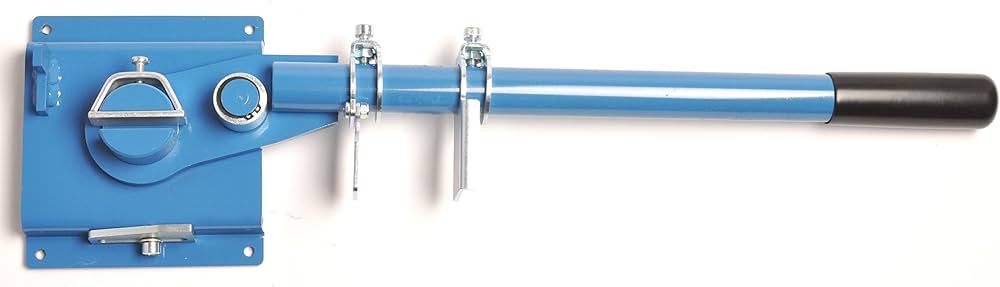 Grazie a questo, è possibile impostare rapidamente qualsiasi lunghezza e conto di piegatura. Bordo di piegatura arrotondato: aumenta lo spessore dei bordi di piegatura. piegatura stiramento traversa crash Piega Ferro Manuale Lartech GIB-4L PRO La Piegatrice Manuale Per Barre Di Ferro/barra 6-18mm (cuscinetto Gabbie In Ferro Per Cemento Canali nella testa: 25 mm di profondità Telaio di curvatura: tubi con un diametro di 33,7 x 2,6 mm Testa (nucleo): 50 mm. Dimensione: Spessore: 5 mm, Lunghezza: 16 cm, Larghezza: 18 cm Colore Blu Limitatori Le regolazioni dei limitatori dell'angolo di piegatura e piegatura vengono effettuate con una sola chiave. GB-2L - Piegatrice a mano per barra di ferro, 6-14 mm il braccio è montato sul cuscinetto per ridurre la resistenza durante il funzionamento, - la piegatrice ha un manicotto a leva di piegatura, che migliora l'efficienza e riduce l'usura, - il canale nella testa è realizzato ad una profondità di 25 mm, consente di piegare più barre contemporaneamente - il telaio è costituito da due elementi (piastre di diversi spessori), - l'elemento di piegatura è soggetto a completo smontaggio, - Testa (nucleo) e perno a manicotto sono realizzati in acciaio ad alta resistenza, - Il braccio è chiuso con una maniglia in plastica La piegatrice può piegare le barre come segue: - Barre nervate fino a # 10 mm o lisce fino a Ø 12 mm taglienti nel canale di testa (nucleo) della piegatrice, - Barre a coste fino a Ø 12 mm o lisce fino a Ø 14 mm con un raggio di r = 25 mm sulla testa della piegatrice.