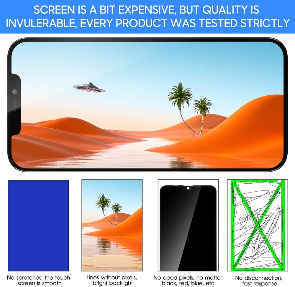 Tuttavia, per sostituire lo iphone 12 pro max schermo lcd in modo più efficiente, ti consigliamo di guardare alcuni video tutorial dettagliati su come sostituire lo schermo su YouTube o altri siti web prima di procedere con l'installazione. QUALITÀ ECCEZIONALE -- A confronto con altri schermi, il nostro touchscreen di ricambio per schermo lcd iphone 12 pro max è in grado di offrirti un'esperienza eccellente. For iPhone 12 Pro Max Display LCD Touch Screen Digitizer Replacement Assembly · EFaithFixOfficial (3719) · 98.9% positive feedback PER L'INSTALLAZIONE -- È facilmente installabile anche per i primi timers! COMPATIBILITÀ -- Solo per il ricambio dello schermo di per iPhone 12 Pro Max , il numero di modello è per A2411 A2342 A2410 A2412, o altri modelli, prega di confermare il numero di modello prima dell'ordine, basta verificarlo sul tuo telefono tramite Impostazioni generali - Informazioni sul modello. Nel caso ci siano problemi con questo schermo di ricambio per iphone 12 pro max lcd display o se incontri difficoltà durante l'installazione, contattaci direttamente e ti assisteremo entro le 24 ore. ASSICURAZIONE DELLA QUALITÀ -- I nostri display LCD con touch screen per schermo di ricambio per iphone 12pro max lcd display sono stati sottoposti a rigorosi controlli di qualità doppi e li confezioneremo in modo sicuro prima dell'invio. Ecco alcuni consigli per l'installazione per te: 1.Verifica della Compatibilità: Prima dell'acquisto, conferma il modello esatto del tuo dispositivo. Durante lo smontaggio del vecchio schermo del tuo per iPhone 12 Pro Max LCD, fai attenzione a non esercitare una pressione eccessiva, al fine di evitare di danneggiare i connettori dello schermo o l'integrità strutturale del dispositivo. 3.Valutazione dell'Installazione Professionale: Se non sei sicuro di poter effettuare la sostituzione in modo autonomo, è consigliabile rivolgerti a un servizio di riparazione professionale per evitare danni più gravi al dispositivo o pericoli per la sicurezza derivanti da una manutenzione impropria. Questo prodotto è progettato specificatamente per la sostituzione dello per schermo dell'iPhone 12 Pro Max i numeri di modello sono A2411 A2342 A2410 A2412 , ed è incompatibile con altri modelli. 2.Maneggia con Cura: Prima di procedere allo smontaggio, assicurati che lo smartphone sia completamente spento ed estrarre la batteria o disconnettere l'alimentazione per prevenire eventuali danni da elettrostatica agli elementi interni. Iphone Pro Max LL TRADER Schermo Per IPhone 12 PRO Max LCD Display 6.7 Sostituzione Iphone 12 Pro Max Lcd Replacement