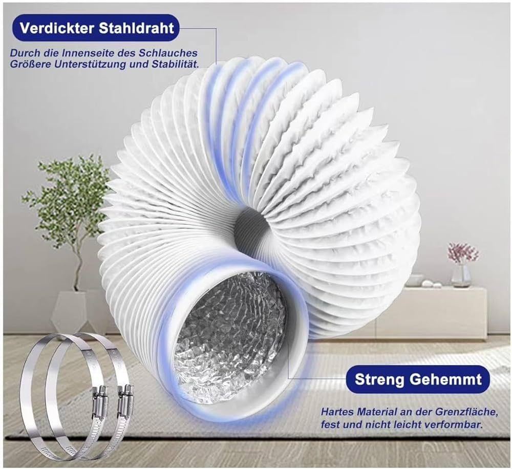 Tubo Di Scarico 100 Mm, Tubo Di Ventilazione Flessibile In PVC, Lungo 3 M, Con 2 Fascette In Acciaio Inox, Utilizzato Per Condizionatori D'aria, Asciugatrici, Cappa Aspirante : Amazon.it: Grandi Elettrodomestici