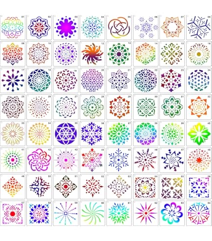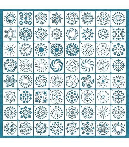 64 Pack Mandala Dot Painting Templates Stencils, Small Mandala Template