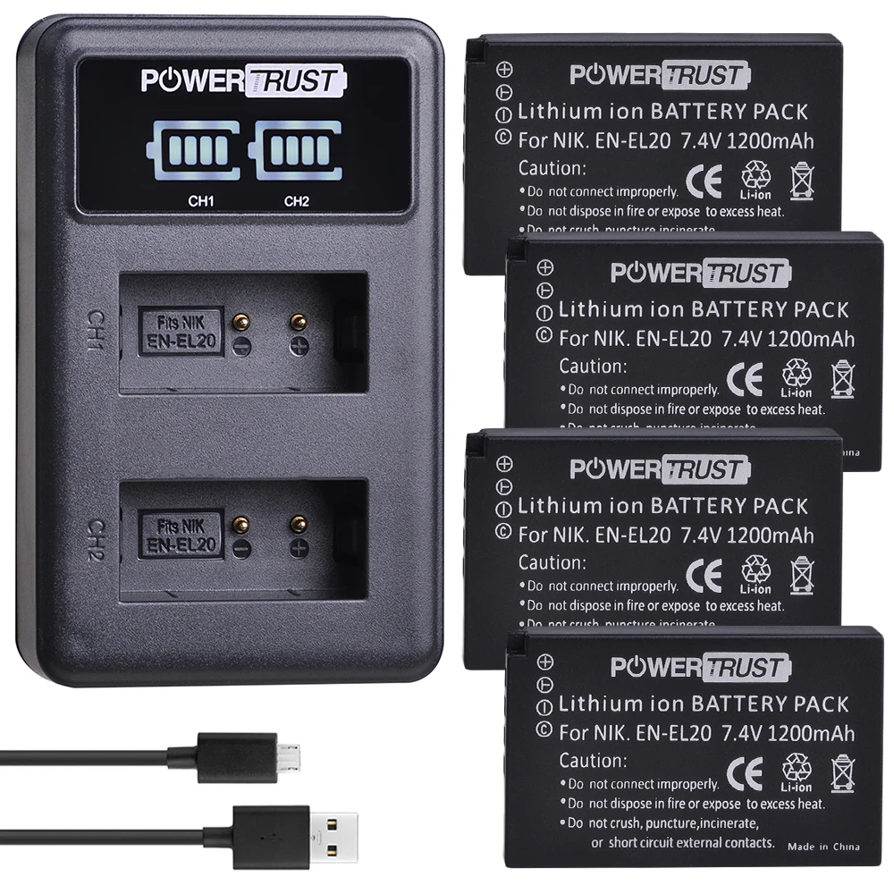 Pickle Power EN-EL20 EN-EL20a Akku 2-Pack Und LED USB Ladegerät Für Nikon Coolpix P1000, P950