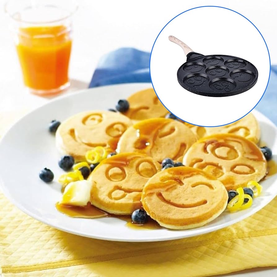La macchina per pancake è adatta per fornelli a gas, elettrici e in vetroceramica. 【Manico isolato contro le scottature】: il manico in legno della padella antiaderente per pancake non solo conferisce alla padella una consistenza naturale, ma la mantiene fresca anche durante la cottura, evitando così efficacemente scottature. 【Ampiamente usato】: la padella per pancake è adatta a tutti i tipi di fornelli. Il rivestimento antiaderente della padella per crepe è progettato per impedire che il cibo si attacchi alla padella, facilitando così la cottura e la pulizia. Non è facile condurre il calore e bruciarsi le mani quando si utilizza la padella antiaderente. È molto sicura. Il manico della padella antiaderente, è ergonomico e comodo da tenere in mano. 【Design carino animale】: la padella antiaderente per pancake presenta il tuo pasto in modo divertente. 【Antiaderente e facile da pulire】: il rivestimento antiaderente a doppio strato di alta qualità della padella per crepe è privo di PFOA e molto resistente. Con la padella antiaderente per pancake animali riceverete 7 pancake con diverse faccine sorridenti. Padella Per Frittata Pancake Padella Antiaderente Per Pancake Diametro 26Cm 7 Fori Padella Frittata Padella Pancake Induzione