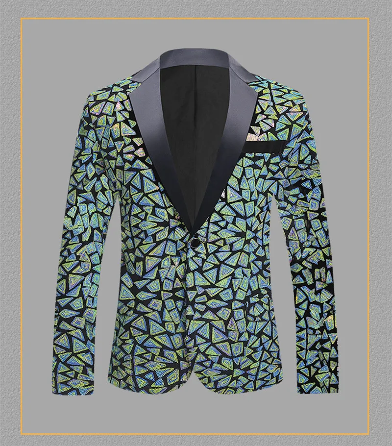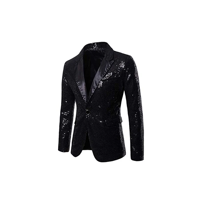 Giacca Da Uomo Con Paillettes, Risvolto Alla Moda, In Pelle, Per