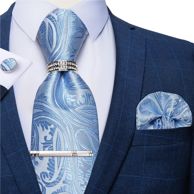 Cravatta Da Uomo In Seta Floreale Blu Paisley Set Cravatte Formali Da Matrimonio Aziendale Per Uomo Con Spilla Gemelli Quadrati Tascabili Regalo