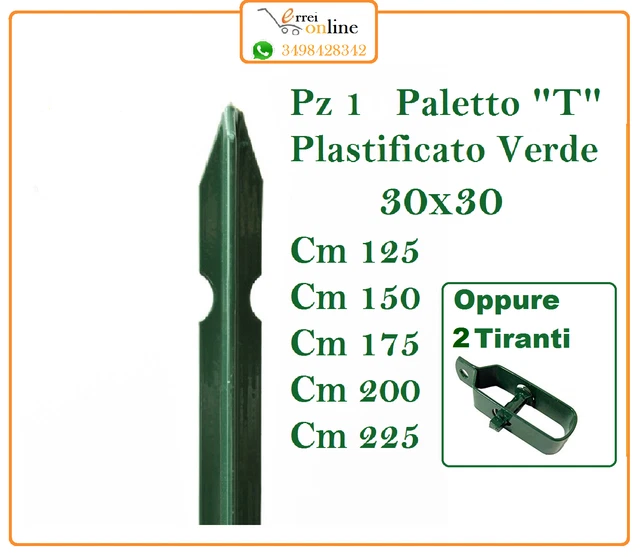 I paletti di metallo plastificato, colore verde, sono particolarmente adatti per essere installati in un ambiente sia interno che esterno. [Per Prodotti by Nextradeitalia] Preventivi ed inserzioni personalizzate su Amazon Gratuite. Pali Per Recinzione 250 Cm Paletti Per Recinzione PALO A T ALTEZZA 250 CM PER RECINZIONE In Ferro Sezione T Mm I 529129 Paletti Per Recinzioni 250 Cm ferro recinzioni antracite altezza plastificato paletto sezione Sezione a T 30x30 mm. Possono essere utilizzati insieme alla rete per recinzione come confine di delimitazione, recinto per gli animali, sostegno per le piante arrampicanti, barriera contenitiva per le aiuole o protettiva per le piccole piante, cantieri, punti panoramici, giardini, cortili, alberi ed il suo impiego è rivolto principalmente ai settori edili, industriali, agricolo e zootecnico. [Garanzia/Assistenza] Sono il nostro punto di forza Grazie al nostro team di Esperti. I pali in ferro della NEXTRADEITALIA sono estremamente versatili e di facile installazione in quanto si adattano a tutti i tipi di terreni. [Dubbi?]Non esitate a contattarci i nostri tecnici sapranno consigliarvi al meglio. Ciò dà diritto alla sostituzione immediata della merce. Categoria/Sottocategoria:PALI IN FERRO A T/PlastificatiArticolo:1 PZ Palo a T altezza 250 CM per recinzione PLASTIFICATO, paletto per recinzione in ferro sezione T mm 30x30x3 Verde Rif. Figura: 27150 Altezza 250 cm. Adatti sia da interrare che da cementare, se si sceglie di cemetarli si consiglia di calcolare + 25 cm, mentre se si sceglie di interrarli si consiglia di calcolare + 50 cm, queste indicazioni sono per un corretto sostegno finale. Preforato per il passaggio dei fili di tensione. Spessore del palo 3 mm. Plastificato in Pvc.