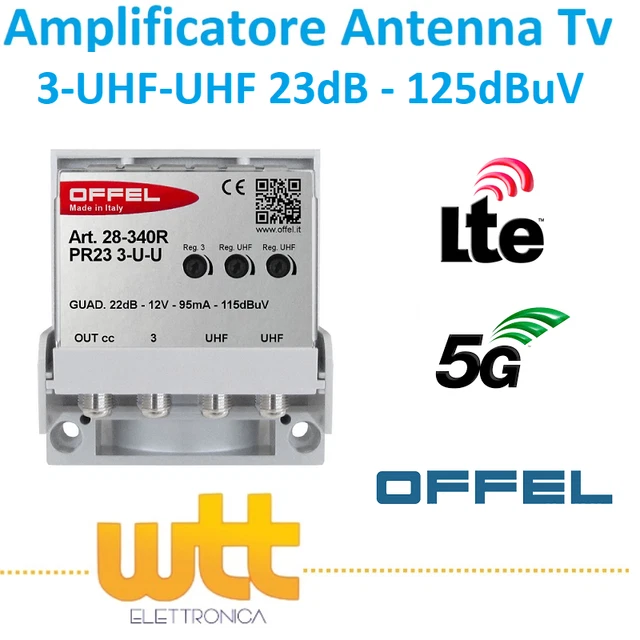 AMPLIFICATORE ANTENNA TV Da Palo Con Filtro LTE/5G 23 DB 2 UHF+1 III 1