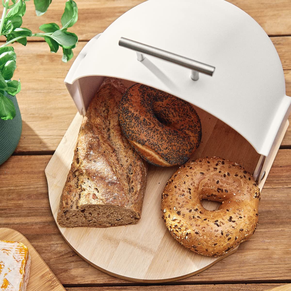 Portapane,Porta Pane Da Cucina,Con Coperchio Di Bambù E