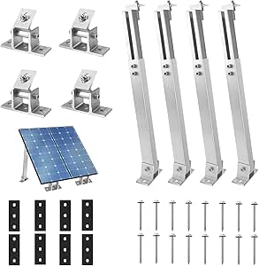 Montaggio Pannelli Solari Fai Da Te Supporto Per Pannello Solare, Pannelli Solari, Set Di Montaggio Da Supporto Universale Per Pannelli Fotovoltaici Ampia applicazione: staffe di montaggio regolabili per pannelli solari off-gird, il posizionamento di celle solari ad angolo massimo di 0°-60° su un tetto, compatibile con pannelli solari da 100 a 400 W. Supporto ampio per pannelli solari : Ampia gamma di usi : Queste staffe di fissaggio sono progettate per sistemi solari fuori rete e possono adattarsi a pannelli che vanno da 50W a 400W. Ottimi per migliorare le installazioni solari su barche, roulotte, t Grande aggiunta per l'uso su barche, camper, tetto, marina, ecc. La confezione include la staffa tra inclinazione e pannello. SICUREZZA E AFFIDABILITÀ: la struttura tiene conto della capacità di carico, della resistenza al vento, alla resistenza ai terremoti e ad altri fattori e attraverso calcoli e test rigorosi per garantire sicurezza e affidabilità. FACILE DA INSTALLARE & REGOLARE: montaggio rapido con chiusure in acciaio inox e posizionamento preciso dei fori. ALTA EFFICIENZA: ideale per il posizionamento di pannelli solari ad angolo su un tetto.