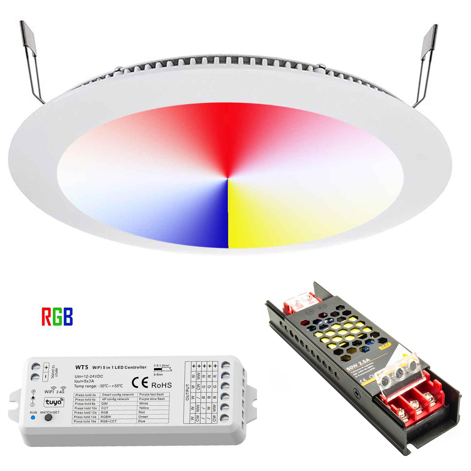 KIT Cromoterapia Faretto Doccia Incasso Pannello Slim LED 8W RGB RGBW 24V Centralina WiFi Controllo Voce Alexa Google Foro 13cm | Leroy Merlin