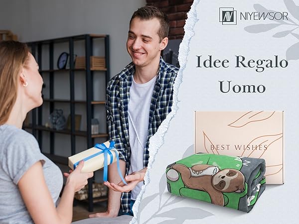 REGALO FRATELLO COMPLEANNO: La divertente coperta a forma di bradipo è il regalo migliore per il tuo caro fratello, crea un accogliente angolo di riposo per il tuo migliore fratello con una coperta calda e accogliente Specifiche: Nome del prodotto: Fratello coperta Materiale: Flanella Dimensioni: 130 x 150cm Peso articolo: 600g Coperta Per La Festa Del Papà Niyewsor Regalo Papà, Regalo Per Papà Coperta, Festa Del Regalo Fratello Regalo Creativo per Fratello: Se stai cercando un regalo davvero speciale per tuo fratello, una divertente coperta a forma di bradipo potrebbe essere la scelta perfetta. adatto non solo per l'ufficio quotidiano, la vita domestica, i viaggi d'affari, ma anche come coperta per pisolino, coperta per auto, coperta per la casa, coperta per divano e coperta da campeggio all'aperto. Realizzate in flanella antipilling, le nostre coperte sono morbide al tatto, antipilling, antirughe, resistenti e confortevoli Poche idee su cosa regalare al fratello? Abbiamo selezionato una serie di bellissime idee regalo per garantirti un successo assicurato. Confezione regalo disponibile in fase di acquisto e pagamento. Non lasciarteli scappare! Ottimo sito, vasta scelta per Questa è un'idea regalo originale che unisce praticità e significato, perfetta per compleanni, festa del papà, Natale o qualsiasi altra occasione importante. Coperta Versatile: adatta a tutte le stagioni all'interno e all'esterno. REGALO FRATELLO PER OGNI VACANZA: Questa coperta per fratello è adatta a diverse occasioni, come regalo di compleanno per fratello, regalo per la festa del papa per fratello, regalo di laurea, regalo di nozze, regalo Natale e tutti i regali di festa