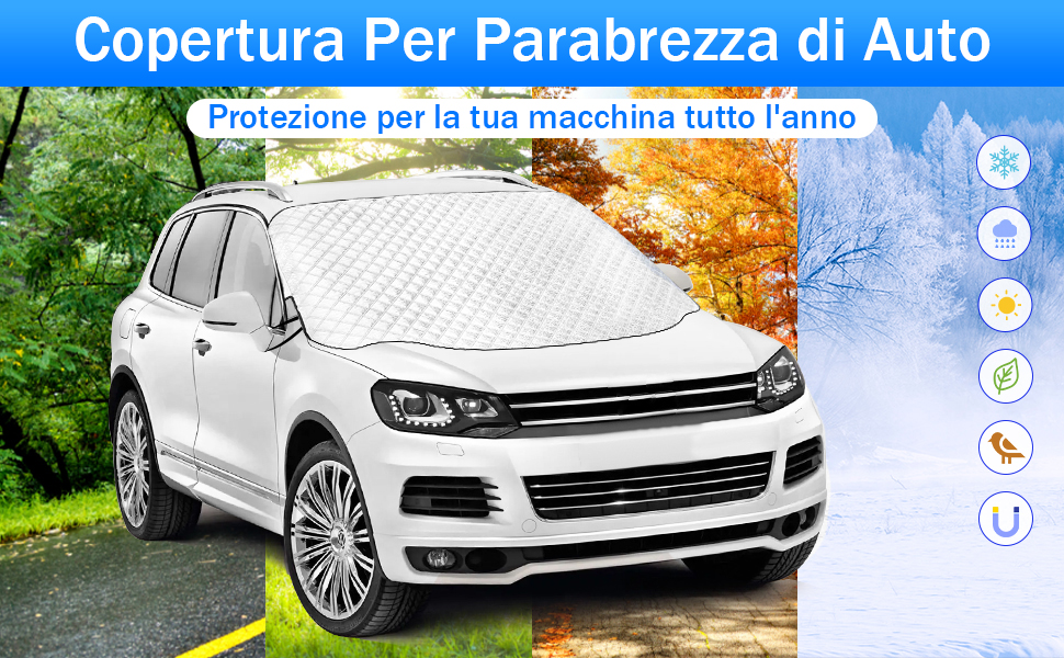 Hai incontrato una di queste situazioni? Ti preoccupi quando sul parabrezza compaiono neve, ghiaccio, raggi ultravioletti, foglie ed escrementi di uccelli? Pensi di perdere troppo tempo a sbarazzartene? La nostra copertura per parabrezza risolve tutti i tuoi problemi. Impermeabile, resistente alla temperatura, resistente allo strappo. Telo Auto URBAN HABITAT Protezione Parabrezza Antighiaccio Con, Auto Copertura Ghiaccio Spray In inverno, può impedire la formazione di gelo, ghiaccio, neve sul parabrezza; In estate, può proteggerà contro raggi UV, e impedisce efficacemente l'alta temperatura nell'auto Protezione dalle radiazioni, anti-UV Eccellente pellicola in Folie in alluminio + Cotone composito(tre strati di cotone). In inverno, protegge il parabrezza dell'auto da ghiaccio, neve e gelo. Protezione estesa: Estendi la parte anteriore del magnete incorporato per proteggere il tergicristallo da eventuali danni Il miglior compagno per proteggere la tua auto!!! Korostro KO17092602, Copertura per parabrezza, Protezione invernale, anti gelo Antighiaccio neve, Magnetico e Robusto, uv, adatto Inverno + Estate,183 x 116 cm Basta fissare tra le portiere dell'auto e portare via quando non in uso. Vermenschliches Design: Winddicht, diebstahlsicher und einfach zu installieren, sparen Sie Zeit Foglie anti-decidue, anti-pioggia acida Antigelo, antineve KOROSTRO Copertura per Parabrezza: Colore: argento Peso: 400 grammi Imballaggio: 1 * parabrezza paraneve Dimensioni: 183 * 116 cm (72 * 46 pollici) Si consiglia di misurare le dimensioni del veicolo prima di acquistare la copertura antineve per parabrezza dell'auto. Questo protezione parabrezza è portable e pieghevole, prende poco spazio; facile da usare, può essere risolto il problema del vetro ghiacciato al mattino. In estate, riflettere efficacemente il calore del sole e proteggerlo dal calore, può ottenere un buon effetto di raffreddamento. È impermeabile per garantire che tutta la neve e brina sulla superficie esterna può essere rimosso facilmente. La copertura invernale per parabrezza si adatta alla maggior parte dei veicoli come automobili, SUV e così via. In estate - Impedisce alla luce solare efficace, riducendo la temperatura all'interno della vettura. Pieghevoli e rimovibili, puoi rimetterli nella pellicola di imballaggio in modo che non occupi molto spazio, molto ben fatti. Descrizione prodotto KOROSTRO Copertura per parabrezza protegge la tua auto da polvere, gelo, neve e ghiaccio. Può essere utilizzato anche come tovagliette da campeggio all'aperto, tappetini per animali domestici e cuscini per bambini. I magneti con un forte potere adsorbente sono nella copertura. Portatile e pratico: Cuciture di precisione, antigraffio, ignifughe, facili da riporre e trasportare