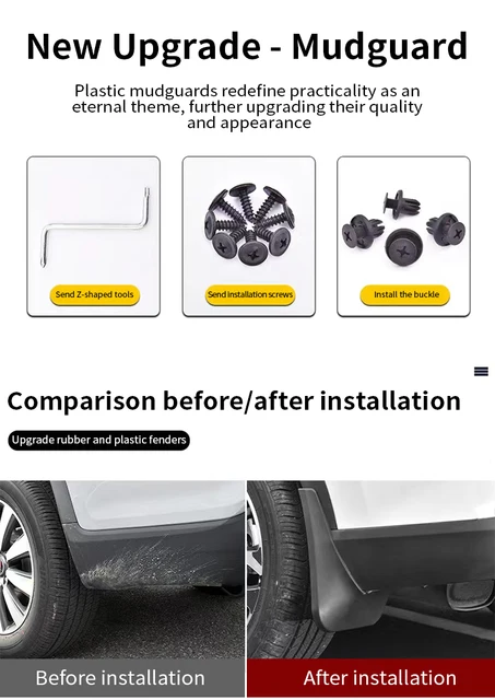 I parafanghi sono impermeabili, antimacchia, anticrepe, anticollisione, antigelo e anti-invecchiamento, il che renderà la tua auto più facile da pulire. 🚘【Materiali di alta qualità】 I parafanghi sono realizzati con materiali di alta qualità. Quantità : 4 pezzi / set. È essenziale che entrambi i pneumatici anteriori e posteriori sono equipaggiati con paraspruzzi, perché i residui della strada sarà cacciato e piccole pietre gettati dai pneumatici possono causare graffi e altri danni alla tua au Parafanghi Dacia Duster Kit 2 Paraspruzzi Anteriori Originali Per Dacia Duster Dal 2010> | Biba Paraspruzzi Dacia Duster 2021 🚘【Installazione semplice】 I parafanghi sono progettati per essere fissati direttamente ai fori o ai punti di montaggio esistenti sul tuo veicolo. 🚘 【Il nostro servizio】: In caso di domande sul prodotto o problemi, non esitate a contattarci. Altamente malleabili, robusti e durevoli, resistenti all'usura e non facili da deformare. Con semplici utensili manuali, puoi completare l'installazione facilmente e in breve tempo. 🚘【Modello applicabile】: per Dacia Duster 2021-2024
