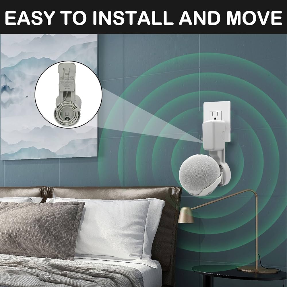 Supporto Per Montaggio A Parete A Muro Per Dot (3ª Generazione), Supporto Di Altoparlante Per Echo Dot 3, Supporto Di Presa Per Cucina, Bagno, Camera Da Letto, Gestione Dei Cavi Integrata (Bianco