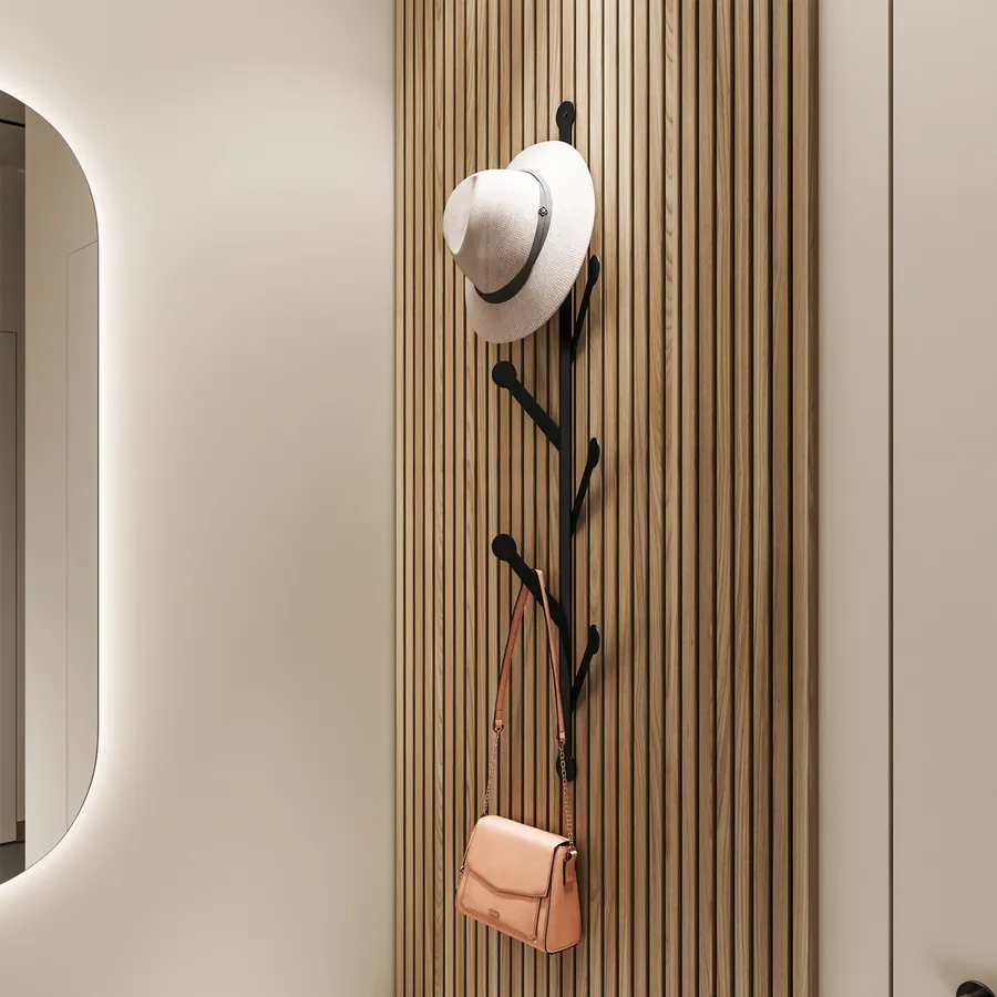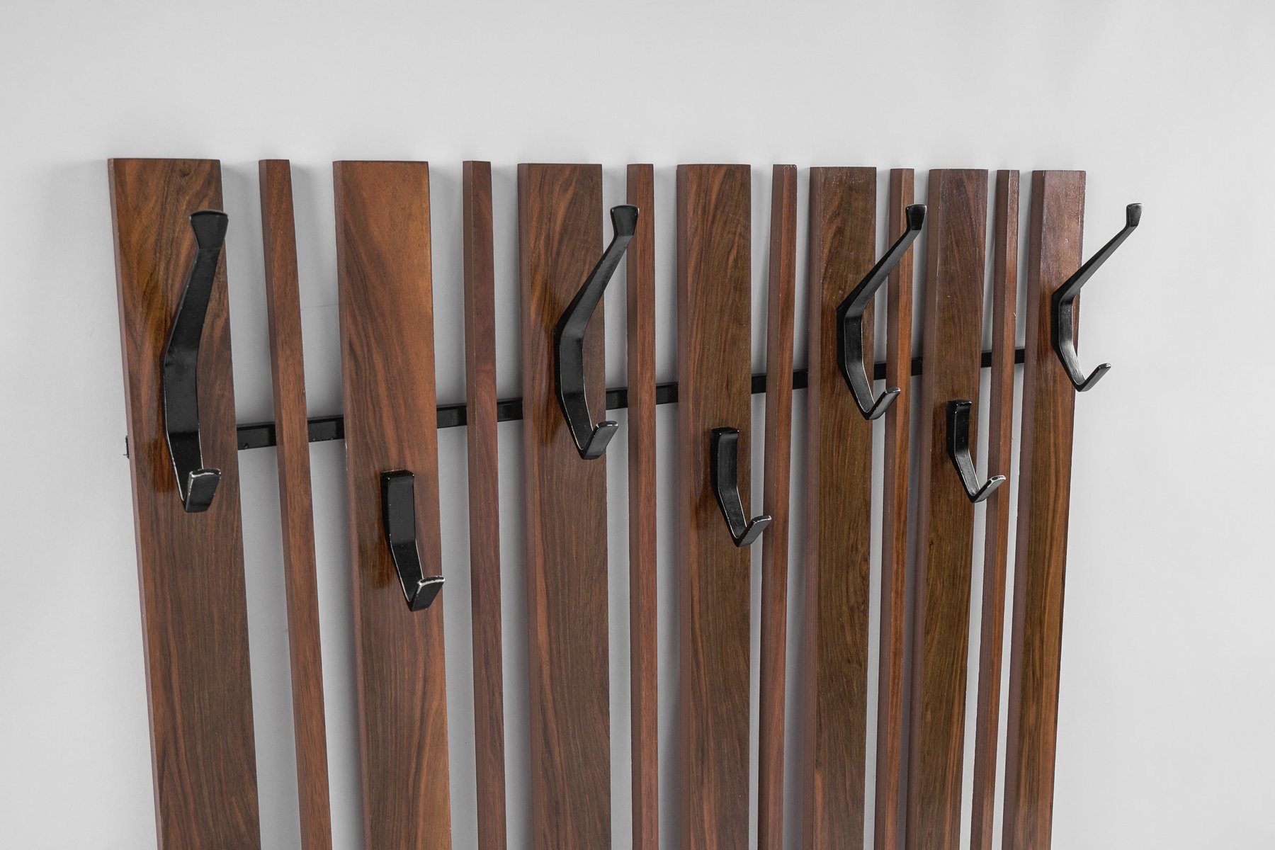 Appendiabiti Da Parete In Legno Di Noce Con Ganci Neri, Anni '60 In