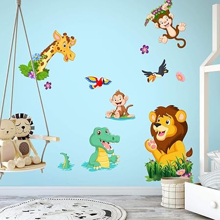 DAZZLUXE 1 Set Di Adesivi Da Parete Per Feste Con Animali, Decorazione Della Giungla, Decorazione Da Parete Per La Cameretta Dei Bambini, Decorazione Per La Cameretta Dei Bambini