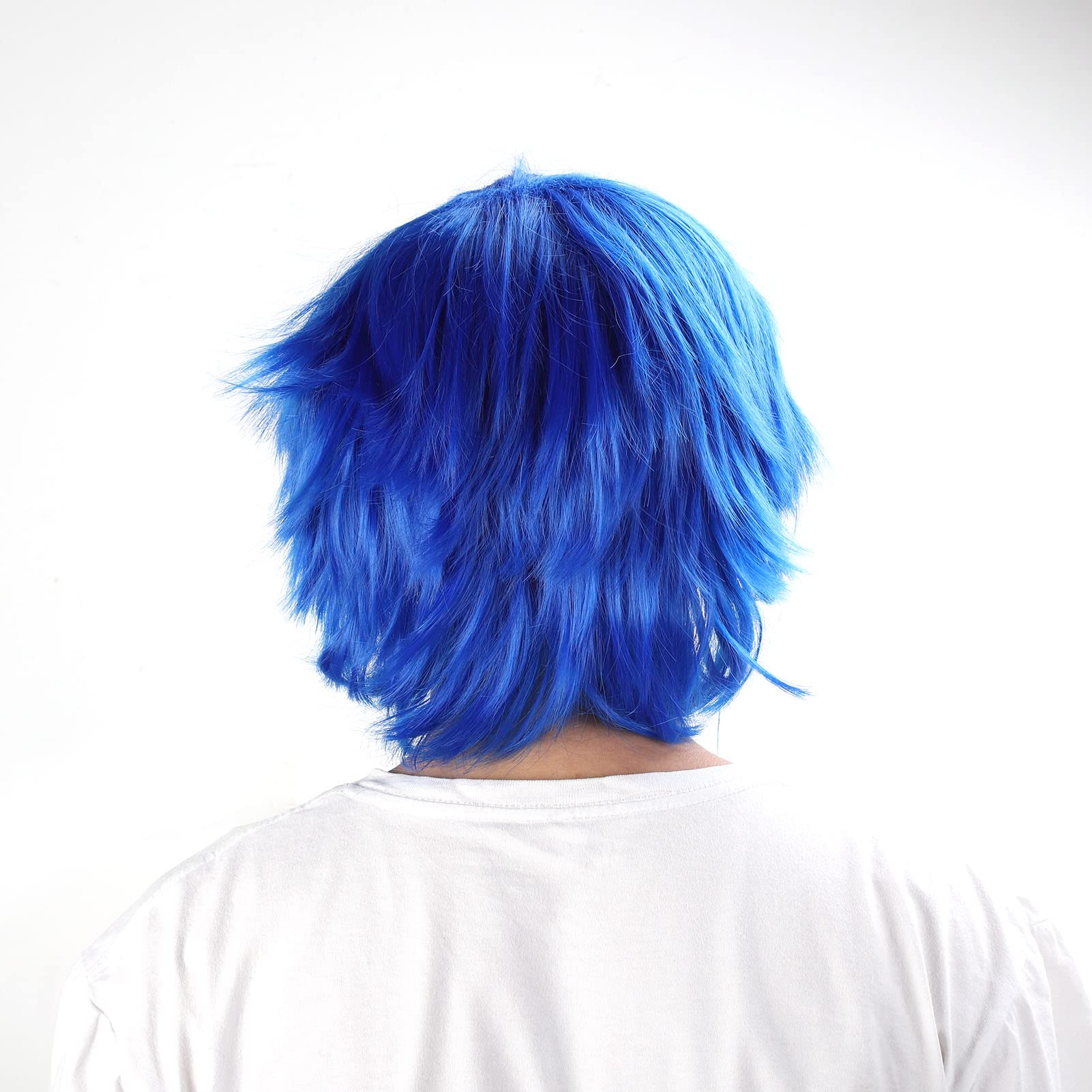 Parrucca Corta Blu Neon Con Frangia Di Colori Per 11,50
