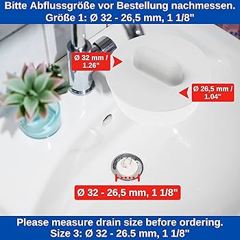 Tappi Per Lavello E Lavabo Tappi Universali, 2 Pezzi, Di Colore Bianco, 45,5 Su 40 Mm, Parte Superiore Sul Fondo, Tappo Di Scarico In Gomma Per Valvole Da 1 5/8, Tappi Di Tappi Di Scarico Per Lavabo Tappo universale per la casa – Diametro Ø 42 su 38 mm] Il tappo per lavandino ha un diametro di 42 mm sulla parte superiore e sul fondo un diametro di 38 mm – il tappo della valvola è adatto per scarichi da 1 1/2. Tappo di scarico con anello – utilizzabile con tappo catenina: grazie al materiale in gomma, questo tappo non è sensibile allo sporco – grazie all'anello rotondo il tappo dell'acqua può essere utilizzato con una catena. ✅ [Materiale adattabile – Tappo in gomma – in bianco] grazie alla gomma flessibile, il tappo di scarico si adatta a lavabi, vasche da bagno e scarichi di ogni tipo.