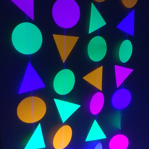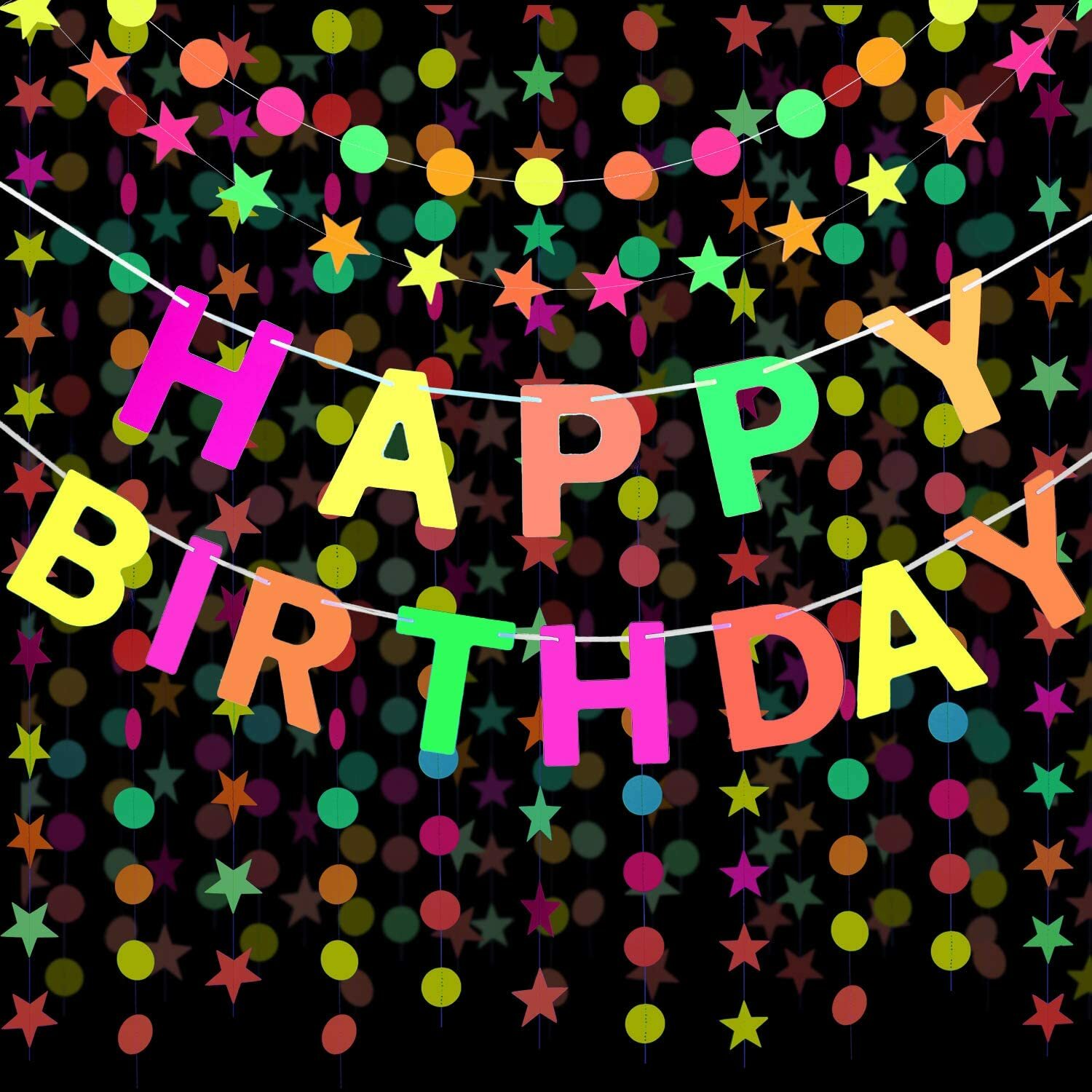 Piatti Carta Glow Party Decorations Neon Star Garland Black Light Party Corona Regina Contenuto della confezione --- Il pacchetto viene fornito con ghirlande di carta neon 3 pezzi in 3 stili diversi, tra cui ghirlande di punti cerchio 1 pezzo, ghirlande di stelle neon 1 pezzo e ghirlande di bandiere triangolo 1 pezzo. Facile da usare --- Lo stendardo può essere drappeggiato su tavoli da festa, attaccato a pareti, corridoi, finestre o archi, puoi anche metterli su recinzioni e alberi in giorni speciali e appenderli ovunque tu voglia. These neon paper garlands are bright under daylight but glow under blacklight UV lights, making your parties more attractive and charming, and giving you a different visual effects Ghirlanda di carta al neon --- Queste ghirlande di carta al neon sono luminose alla luce del giorno ma brillano alla luce UV della luce nera, rendendo le tue feste più attraenti e affascinanti e dandoti un diverso effetto visivo.