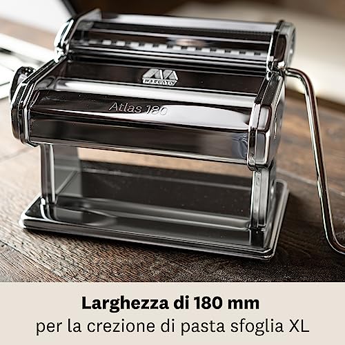 Ogni parte è curata nei più piccoli dettagli per esaltare l’eleganza e la semplicità. USI ALTERNATIVI: Atlas 180 può essere utilizzata per realizzare alcuni panificati come la piadina, il pane arabo o il pane carasau. Macchina Pasta Fresca Marcato Macchina Per La Pasta Atlas 150 + Motore Elettrico, Sfogliatrice Per Lasagne, Fettuccine Marcato Atlas 180 Macchina per pasta Marcato Atlas 180 Roller in Offerta MACCHINA PER LA PASTA ATLAS 180 SLIDE: Atlas 180 Slide è tutto ciò di cui hai bisogno per sperimentare subito nuove ricette, un'icona del design e dello stile italiano. I materiali utilizzati sono studiati per non essere nocivi alla salute. Un accessorio che racchiude in sé funzionalità e praticità ma che conserva la genuinità del cibo fatto a mano. Grazie al pratico scivolo potrai inoltre aiutarti nella preparazione di tutti i panificati non lievitati. COMPATIBILE CON IL MOTORE: Atlas 180 può essere utilizzata anche con Pastadrive, il motore che ti aiuta nella preparazione della pasta fresca. Può essere utilizzato su qualsiasi superficie piana, senza alcun fissaggio. I suoi rulli extralarge di 18 cm permettono di realizzare una maggiore quantità di sfoglia. IN ACCIAIO CROMATO: La macchina è interamente realizzata in acciaio cromato di alta qualità, lavorato e assemblato in Italia. Atlas 180 ti permette di preparare sfoglie con una larghezza massima di 180 mm, più grandi rispetto alle altre macchine della stessa categoria. I suoi rulli sono realizzati con una superficie impercettibilmente ruvida che renderà la pasta porosa per esaltarne il gusto e legare facilmente ai condimenti.