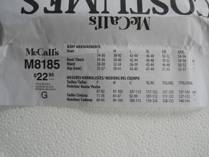 McCalls Sewing Pattern 8185 (XM) - Mens Costume S-L