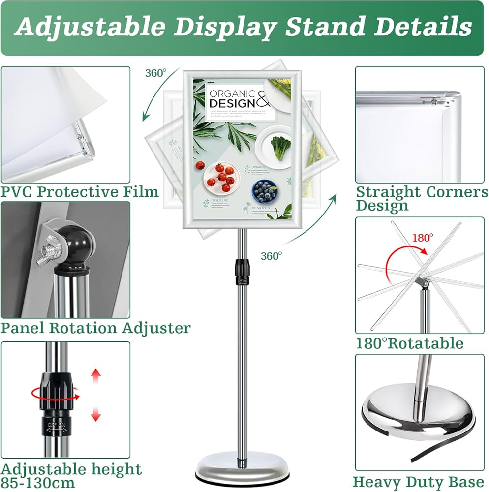 Mutualsign A4 Espositore Regolabile Da Pavimento - Supporto In Alluminio Per Poster E Avvisi - Sostituzione Rapida (Argento