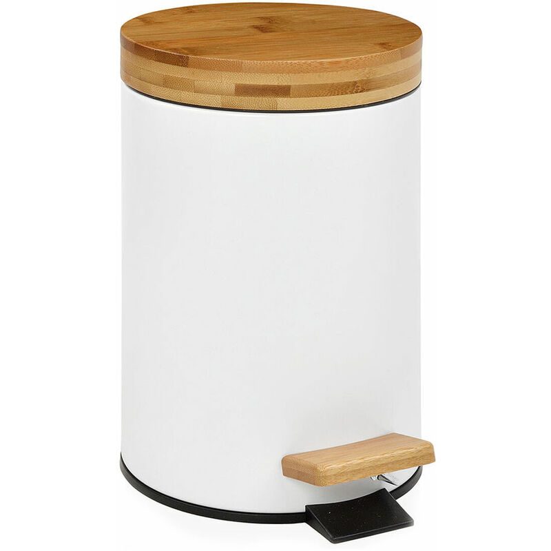 Pattumiera A Pedale 3 Litri Bianco In Bambù E Metallo Salvaspazio 17x20 P 103623