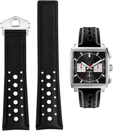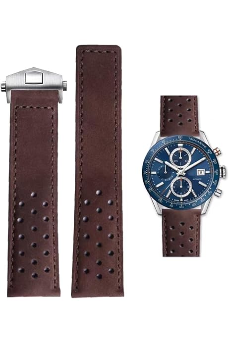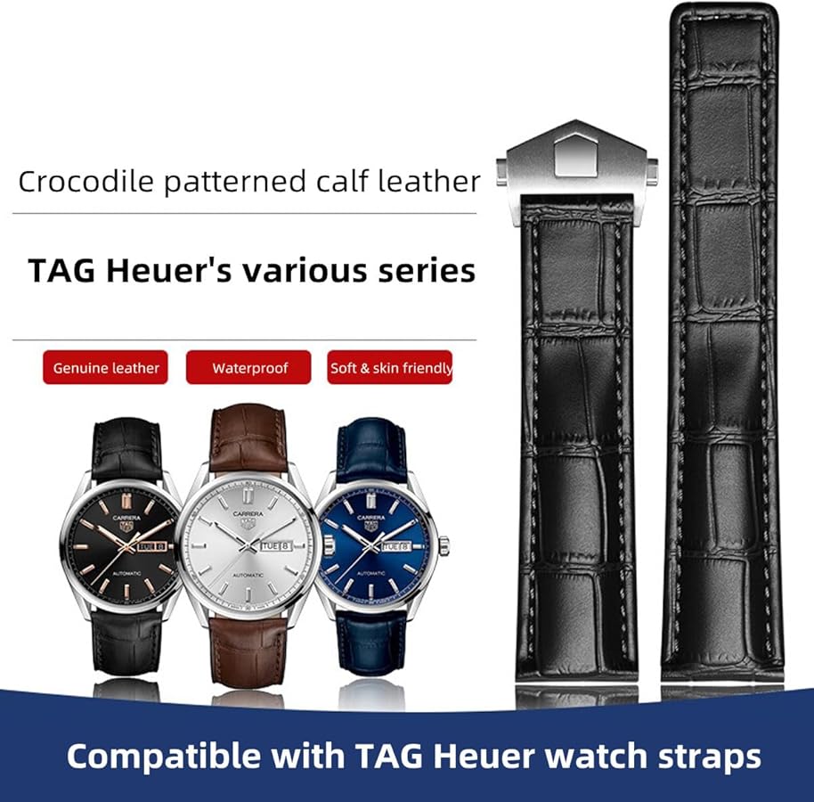 FOUUA Cinturino Per Orologio Per TAG Heuer 22mm Vera Pelle Cinturino Per OrologioO Di Coccodrillo Marrone Nero Con Cuciture Blu Per Adattarsi Ai Modelli 19mm 20mm 22mm