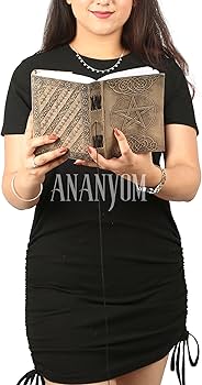 ANANYOM Diario in pelle fatto a mano, stile fantasy moderno, gotico a spirale, per amanti dei teschi, diario vintage antico, 200 fogli bianchi, senza righe, chiusura in ottone, per uomini e donne Diari Geolier ANANYOM Diario In Pelle Fatto A Mano, Viola, Sole E Luna Diario Di Giolier
