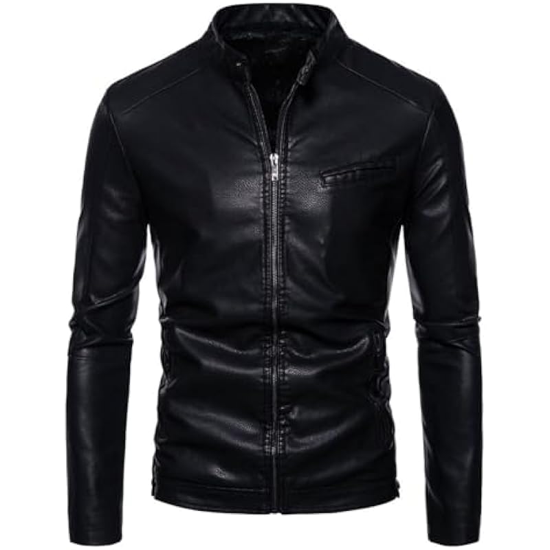 Generico Giacche In Pelle Nera Da Uomo Cappotti Lunghi In Pelle Da Uomo Classic Biker Faux Slim Fit Moto Cappotto Giacca Pelle Uomo Piumino Uomo