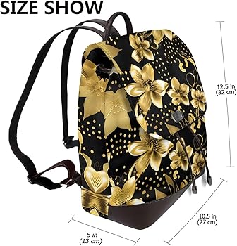 SSIMOO Zaino In Pelle Nera E Oro Con Stampa Floreale, Da Donna