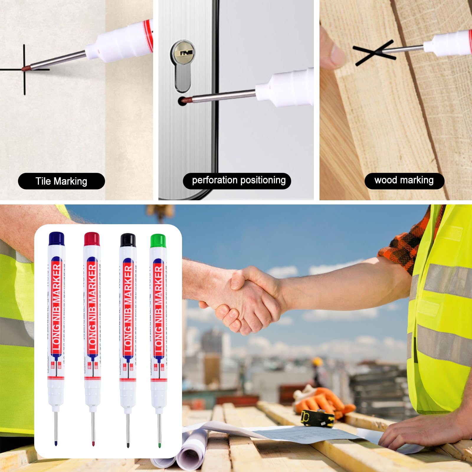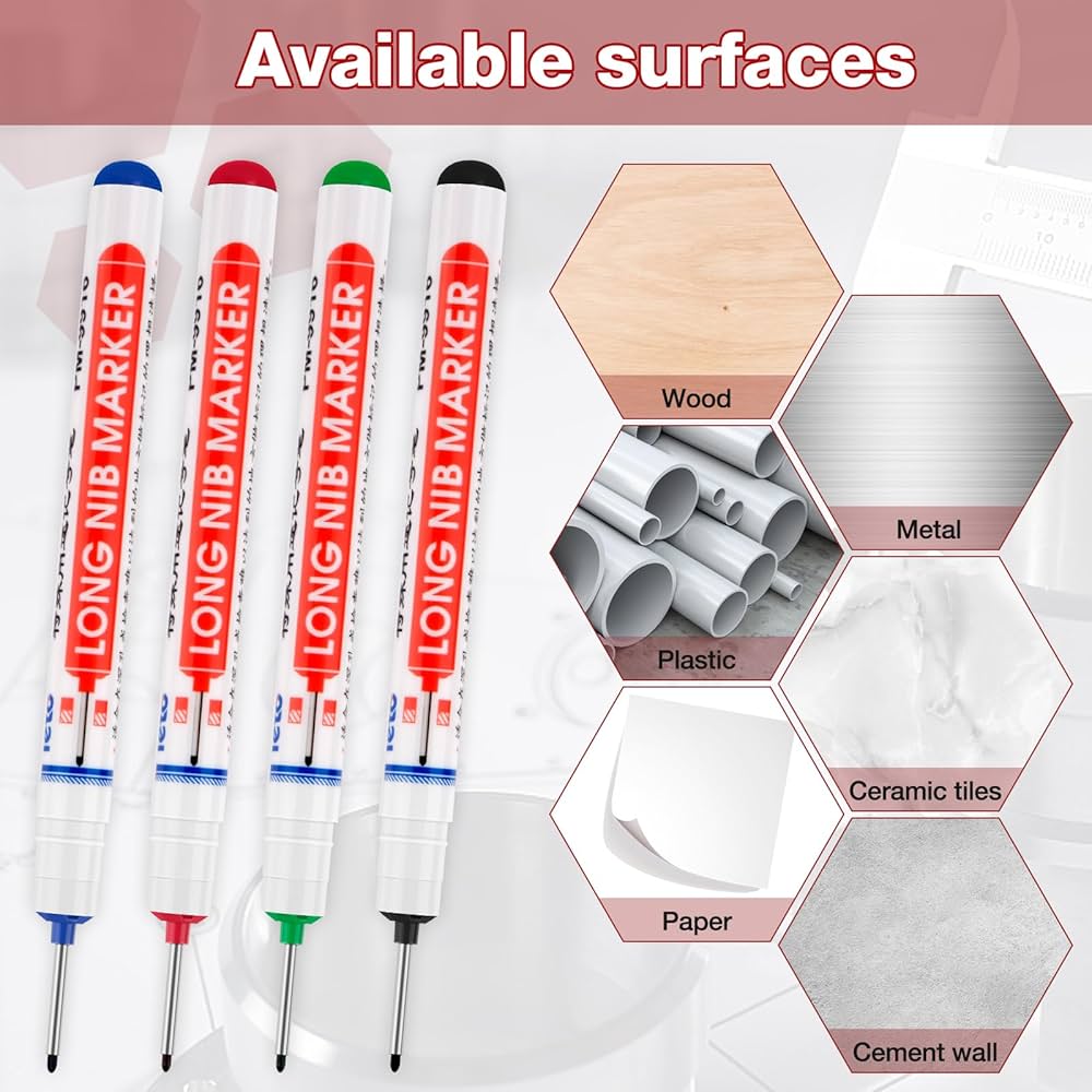 Pennarelli Per Fori Profondi Fiyuer 16 Pezzi Pennarelli Indelebili, , Penna Falegname, Pennarello Indelebile A Punta Fine Da 30 MM, Per Segnare In Luoghi Profondi Penna Per Piastrelle