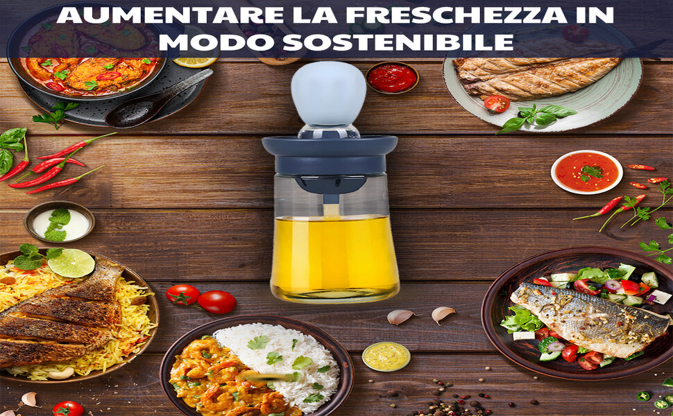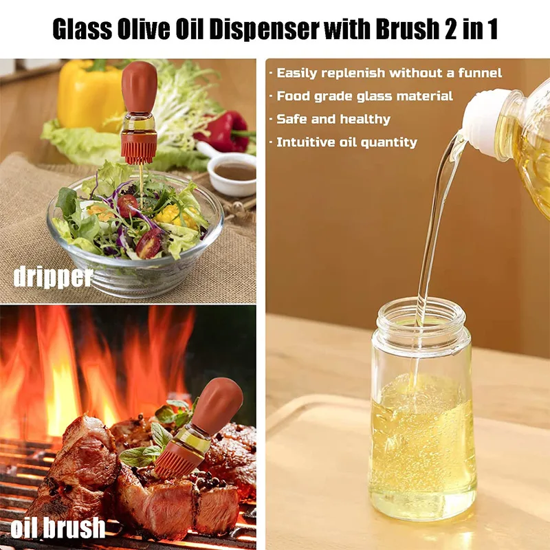 Dosatore Per Olio In Offerta Dispenser Olio Con Pennello In Silicone, Bicchiere 3 In 1 350 Ml, Pennello Dosatore Olio, Con Pennello Per Cucinare, Insalata, Cottura Al Forno Oliera Vetro Bottiglie di olio e aceto di design 3 in 1: lo speciale beccuccio antigoccia consente un versamento facile e controllato e previene fuoriuscite disordinate. Godi una riduzione su Dispenser Di Olio Con Pennello - Dispenser Di Olio Di Olive In Vetro Per Cucina, Bottiglia Dispenser Di Olio 3 In 1 Con Pennello Di Marinatura In Silicone Per Cucinare Salse Di Aceto Barbecue E Friggere Basta spremere la testina del contagocce in silicone in modo da poter facilmente spalmare l'olio. Grazie al design 3 in 1 aiuta a tenere in ordine la cucina. La nostra bottiglia di olio è realizzata in vetro di alta qualità e gel di silice, è sicura, non tossica, resistente e può essere utilizzata a lungo. Può sopportare temperature elevate fino a 250 ℃. Per uso alimentare: spazzola in silicone resistente alle alte temperature, può essere applicata direttamente sulla padella riscaldata o sul cibo per facilitare la cottura.