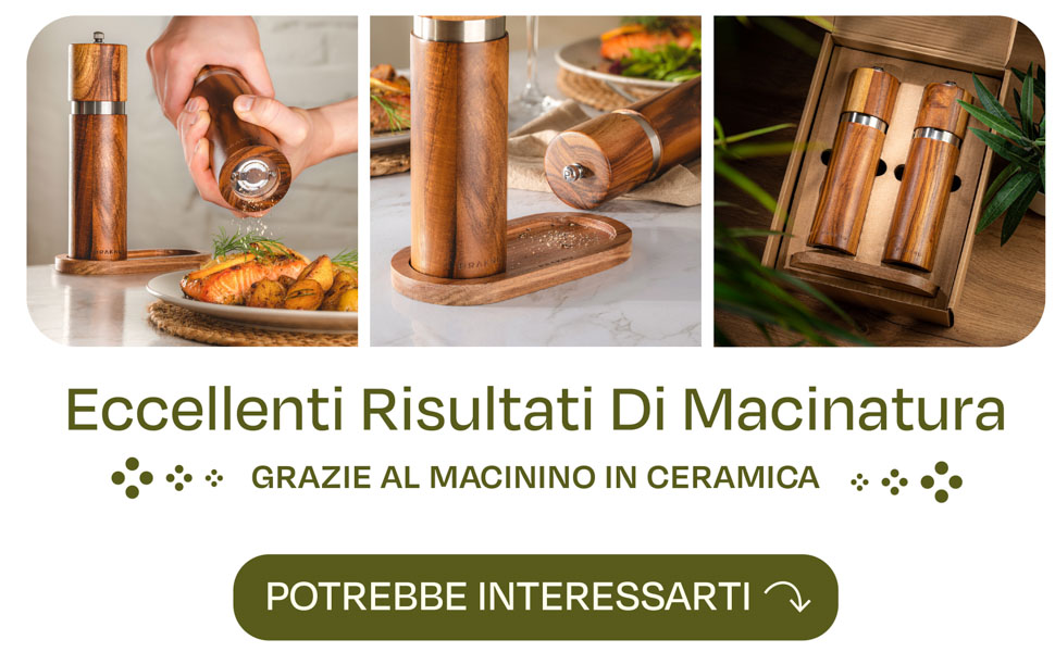 Set Macina Sale E Pepe, Macinapepe Con Coperchio In Bambù E