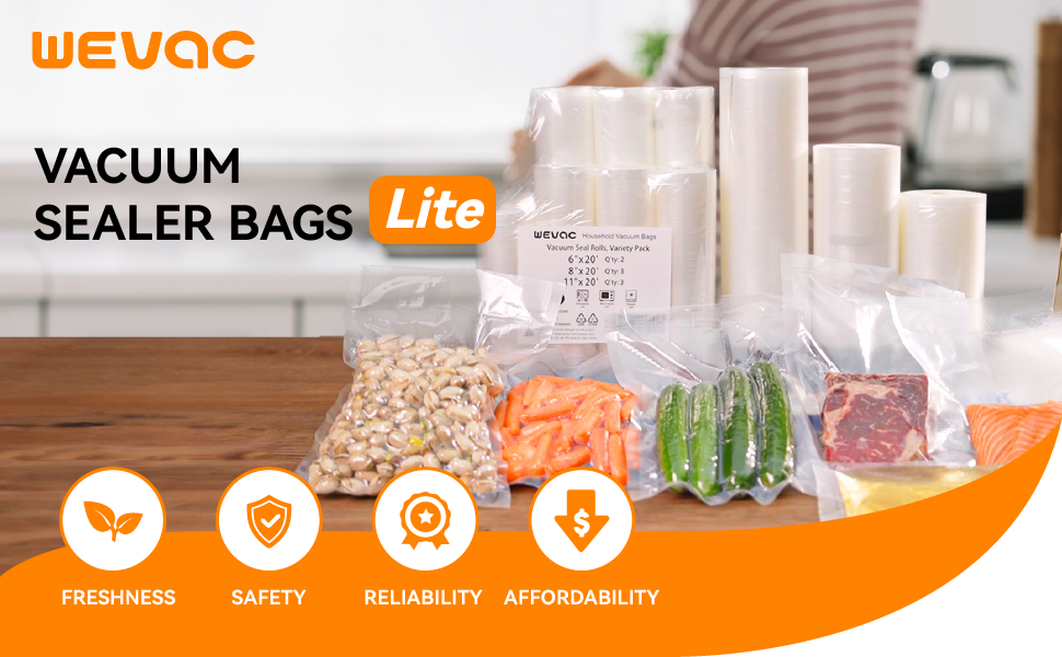 I nostri sacchetti sottovuoto di livello commerciale sono progettati per la versatilità, rendendoli perfetti per una vasta gamma di applicazioni. QUALITÀ AFFIDABILE, PREZZI CONVENIENTI: Sosteniamo i nostri prodotti, offrendo qualità affidabile e prezzi convenienti. Con i sacchetti sottovuoto Wevac Food puoi conservare con sicurezza il cibo per ogni occasione, dai pasti quotidiani agli eventi speciali. PERFETTI PER SOUS VIDE, CONFEZIONAMENTO E CONSERVAZIONE DEGLI ALIMENTI: Offrono un eccellente effetto sottovuoto, preservando la freschezza dei tuoi alimenti da bruciature da congelamento o disidratazione. Wevac Lite 8 Rotoli 20/28x300cm Sottovuoto per Alimenti , Buste Sottovuoto Alimenti Goffrati Senza BPA, Grado Commerciale per Conservazione Alimenti e Cottura Sous Vide Sia che tu stia conservando carne, verdura, frutta o anche marinando i tuoi piatti preferiti, questi sacchetti sottovuoto assicurano che il cibo rimanga fresco fino a cinque volte più a lungo rispetto ai tradizionali metodi di conservazione. AUMENTA IL TEMPO DI CONSERVAZIONE PER NUTRIZIONE E SAPORE: Durata di conservazione degli alimenti 3-6 volte più lunga, mantenendo freschezza, sapore e nutrizione all'interno. Buste Wevac Lite 3 Rotoli Sottovuoto Per Alimenti 28x1500cm (totale 45 M Sottovuoto Alimenti Presentazione dei sacchetti sottovuoto Wevac Food – la soluzione definitiva per preservare la freschezza e il sapore del tuo cibo! SENZA BPA: Perfetti per la conservazione degli alimenti, pasti liofilizzati, sous vide, giardinaggio, foglie di tè, ecc. Protezione da umidità e muffa: ideale per proteggere apparecchiature fotografiche e altri dispositivi elettronici soggetti a danni causati dall'umidità. COMPATIBILITÀ VERSATILE: sacchetti pretagliati da 3 Rotoli 28x600cm compatibili sia con sigillatrici sottovuoto a campana che con sigillatrici sottovuoto esterne, offrendo flessibilità per varie macchine, come Food Saver, Seal a Meal, Nesco, Weston, Cabela’s, Ziploc, ecc. Conservazione dell'arte e dei documenti: Utilizzato per salvaguardare opere d'arte, documenti importanti e manoscritti storici dall'umidità e dai parassiti. I sacchetti sottovuoto per alimenti, oltre a preservare la freschezza negli alimenti, servono una varietà di altri scopi: Conservazione di oggetti di valore: possono essere utilizzati per conservare oggetti preziosi come gioielli, francobolli e monete per prevenire ossidazione e danni. Conservazione del cibo per animali domestici: utile per conservare il cibo per animali domestici, mantenendolo fresco e prevenendo il deterioramento.