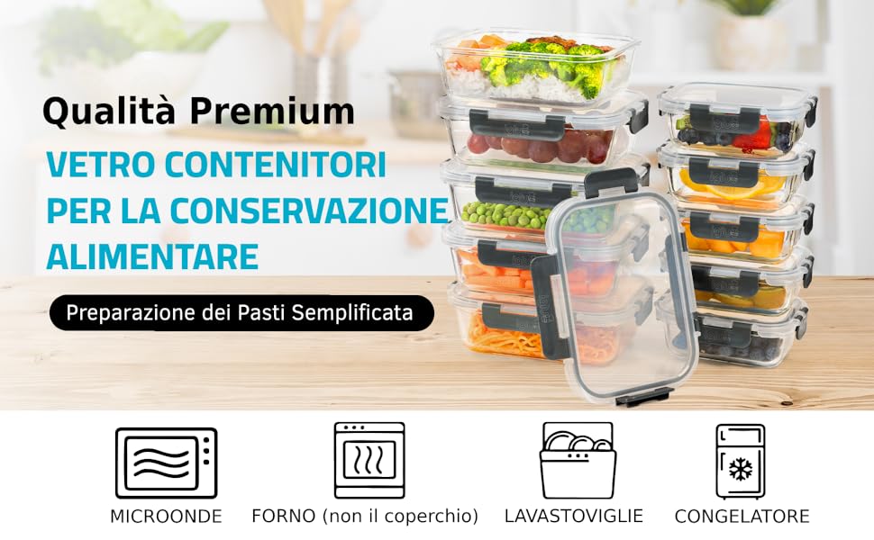 Contenitori Ermetici Per Alimenti Vetro Con Coperchio - Ideale Per Microonde, Forno, Frigo E