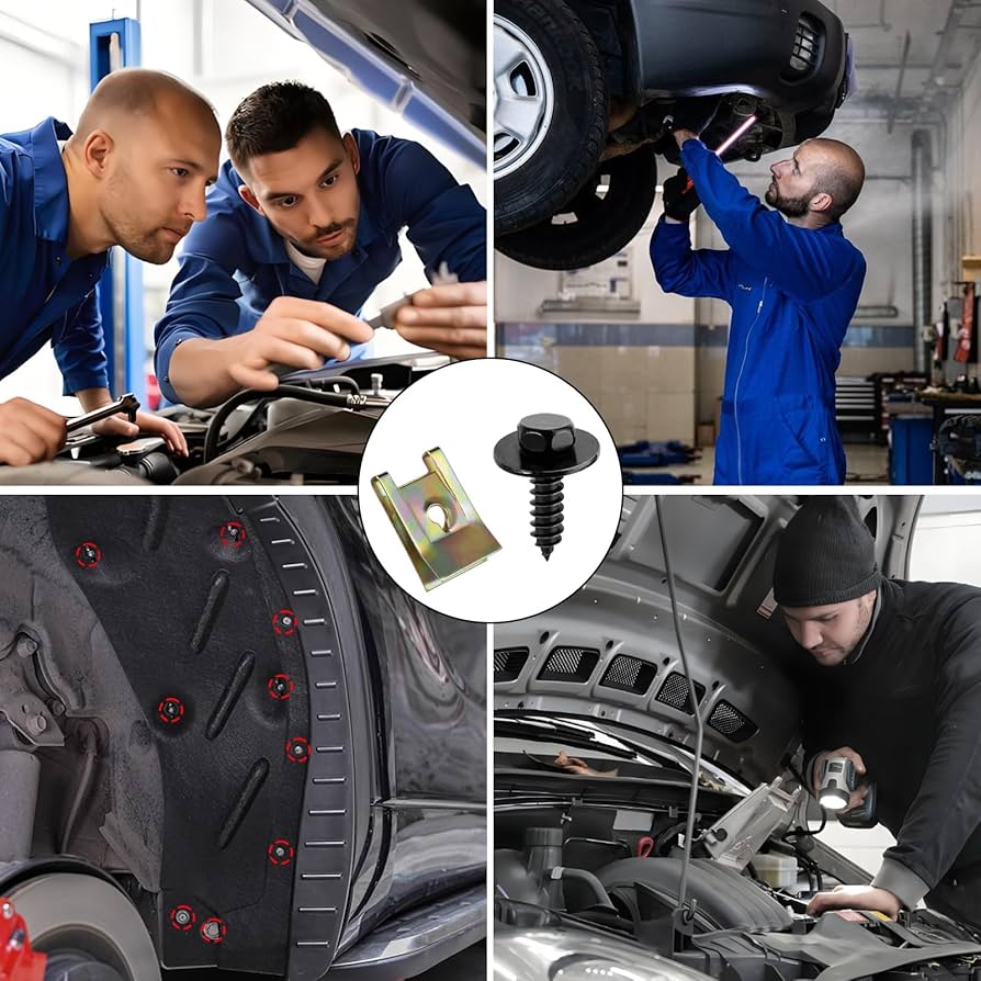 [LAVORAZIONE OTTIMA] - I morsetti del parafango e i bulloni della carrozzeria sono realizzati con cura, con superfici lisce e prive di sbavature e della dimensione giusta per adattarsi perfettamente ai parafanghi della tua auto. [IMBALLAGGIO DEL PRODOTTO] - Il set contiene 50 viti autofilettanti e 50 clip di montaggio a forma di U. Clips Pannelli Auto 170 Pezzi Di Clip Di Fissaggio Per Auto, Clip Per Auto, Clip Per Auto Clip Per Auto Clip Per Carrozzeria 85 Pezzi Di Viti A Testa Phillips 85 Pezzi Di Clip Di Montaggio Per Auto A Forma Di U Clip Di Fissaggio Per Parafango 87065615 Clip Carene Di Fissaggio [MATERIALE] - Le viti di montaggio sono realizzate con bulloni in acciaio zincato nero di alta qualità e rondelle metalliche, mentre i dadi in lamiera a forma di U sono realizzati in acciaio al manganese di alta qualità. Il filo è profondo, la trama è chiara, il morso è alto e l'installazione è più semplice. Ideale per fissare pannelli di auto, paraurti, parafanghi, cofani e paraspruzzi 100PCS Clip Di Fissaggio per Auto, Viti Autofilettanti per Metallo ... Clip Fissaggio Pannelli Auto, Per Carrozzeria Panel Auto Viti Carene Bulloni Di Fissaggio Il set di morsetti per dadi è molto robusto e resistente all'usura, non facile da arrugginire, resistente all'ossidazione, non facile da rompere e piegare. [FACILE DA INSTALLARE] - Il set di morsetti per dadi è realizzato con squisita fattura, stampato in un unico pezzo, può essere collegato liberamente e non è facile scivolare durante l'installazione. [AMPIA APPLICAZIONE] - Queste clip per auto sono adatte per fissare qualsiasi oggetto in un foro di diametro adeguato.