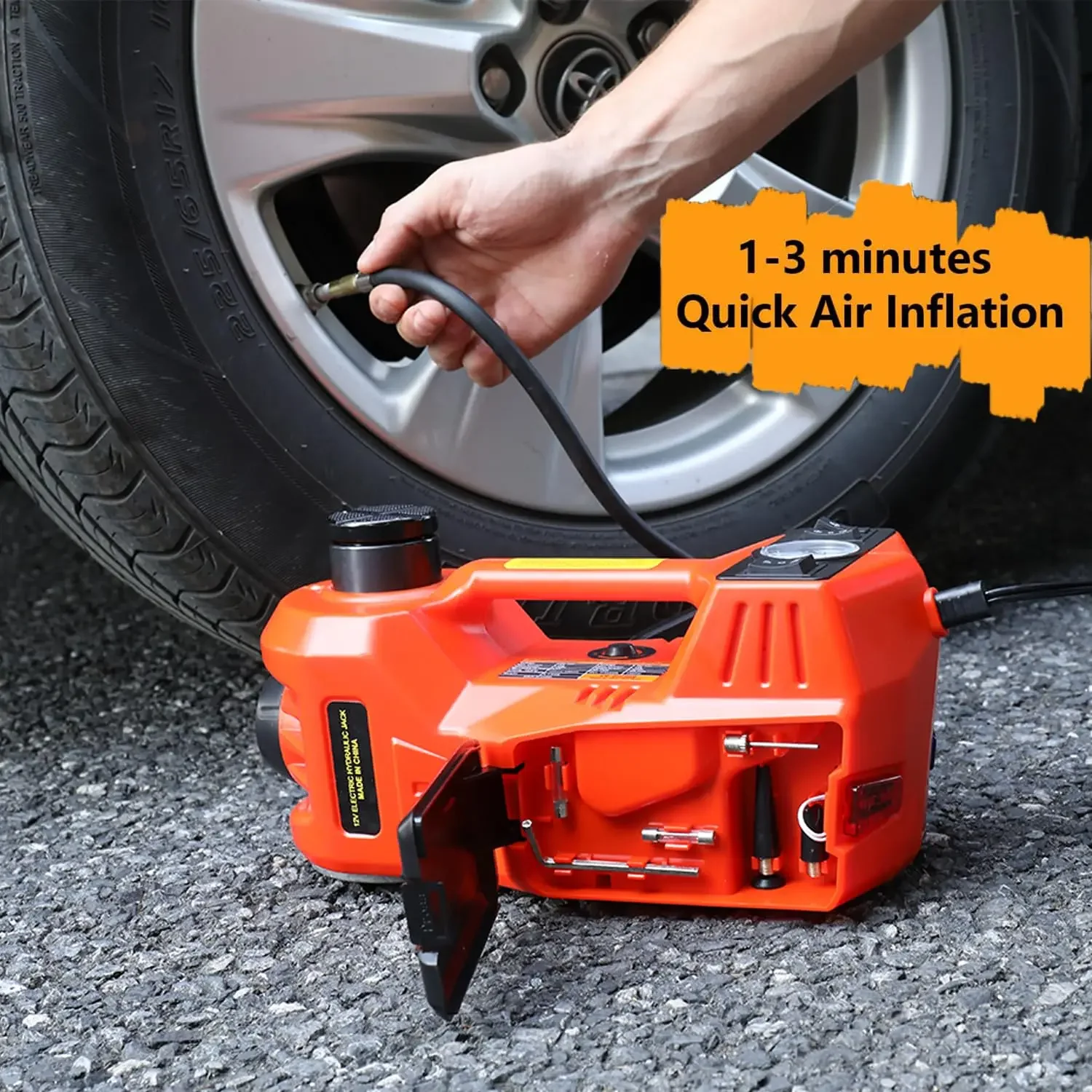 Chiave elettrica efficiente: con una coppia massima di 350 Nm, questa chiave elettrica stringe o allenta i bulloni in pochi secondi. Include 2 bussole esagonali, compatibili con 4 misure di bulloni (17/19 mm e 21/23 mm), adatte alla maggior parte dei dadi delle ruote. VEVOR Cric Elettrico per Auto da 5 T Cric Elettrico a Forbice con Gonfiatore Integrato, Sostituzione Pneumatici 12 V con Chiave a Percussione Elettrica e Luce LED, Kit Cric Portatile per Berlina, SUV Gamma di sollevamento idraulico: 6,1-17,7 pollici/155-450 mm (asta corta), 9,2-20,9 pollici/235-530 mm (asta estesa), adatto per auto, SUV e veicoli con altezza da terra variabile. Il cric idraulico migliora l'efficienza della sostituzione del pneumatico. Per veicoli oltre 5T, consigliamo di utilizzare l'alimentazione per auto per garantire un sollevamento stabile. Doppia alimentazione: dotata di accendisigari e morsetto di alimentazione per auto da 12 V per opzioni di alimentazione flessibili. Descrizione Prodotto Assistente per il cambio gomme 3 in 1 Dotato di un dispositivo di gonfiaggio, il cric utilizza una struttura idraulica di alta qualità e un motore potente per sollevare il veicolo in 2 minuti e rimuovere i bulloni degli pneumatici in pochi secondi. Con una struttura idraulica che fornisce un sollevamento fluido ed efficiente, raggiunge l'altezza massima in soli 2 minuti. Progettato per la versatilità, questo kit cric elettrico per auto è ideale per sollevare auto, SUV, camion e altro ancora. Cric Per Auto Idraulica VEVOR Cric Elettrico Per Auto Da 5 T Cric Elettrico A Forbice Con Cric Per Auto Elettrico