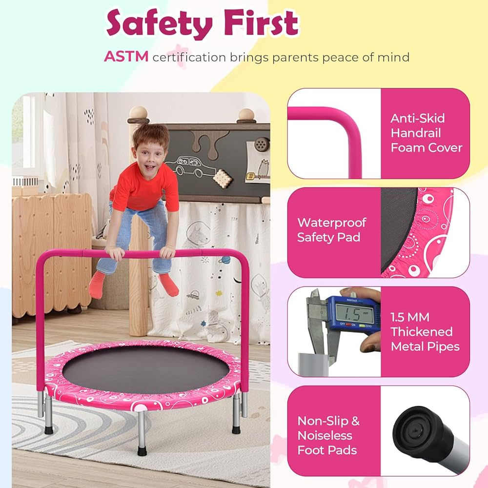 Tappeto Elastico Bambini LIFEZEAL Trampolino Elastico Per Bambini 3-10 Anni, 92x81cm, Mini Trampolino Per Interno, Salta, Jump, Con Maniglia E Gambe Rimovibili, Sicuro, Pieghevole, Telaio In Metallo, Regalo, Max 150kg (rosa Elastico